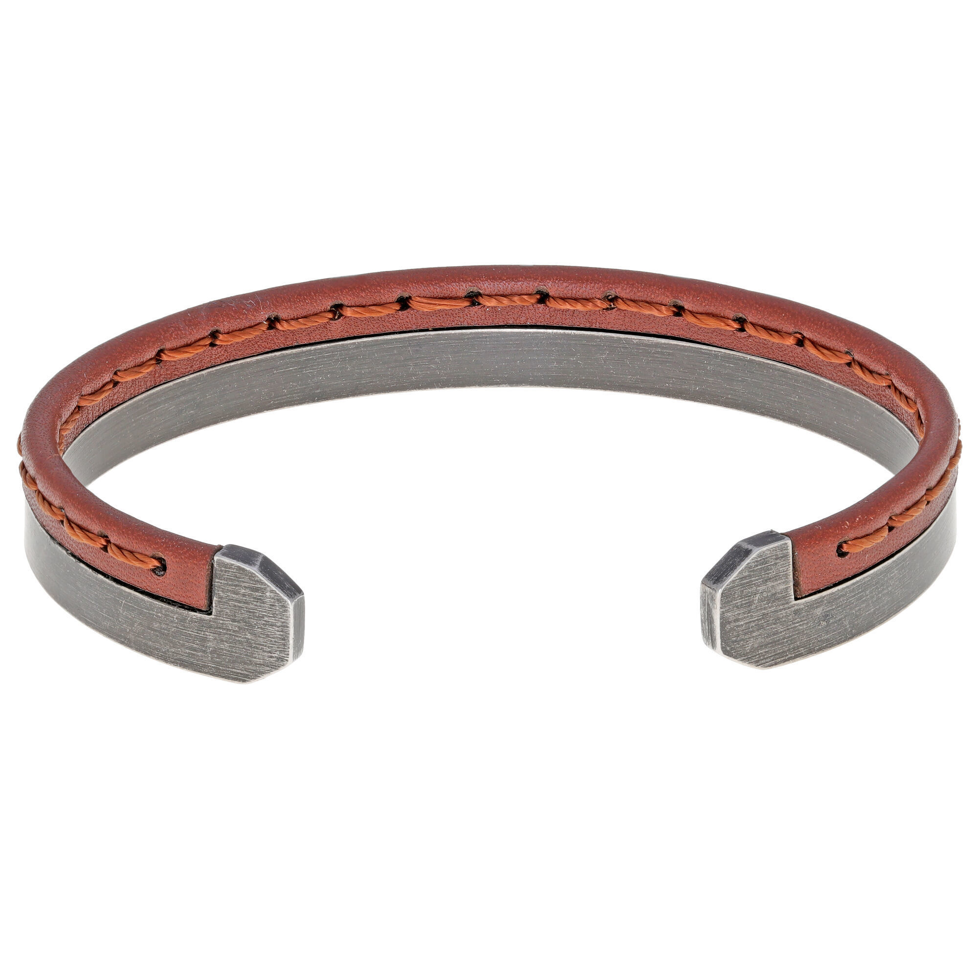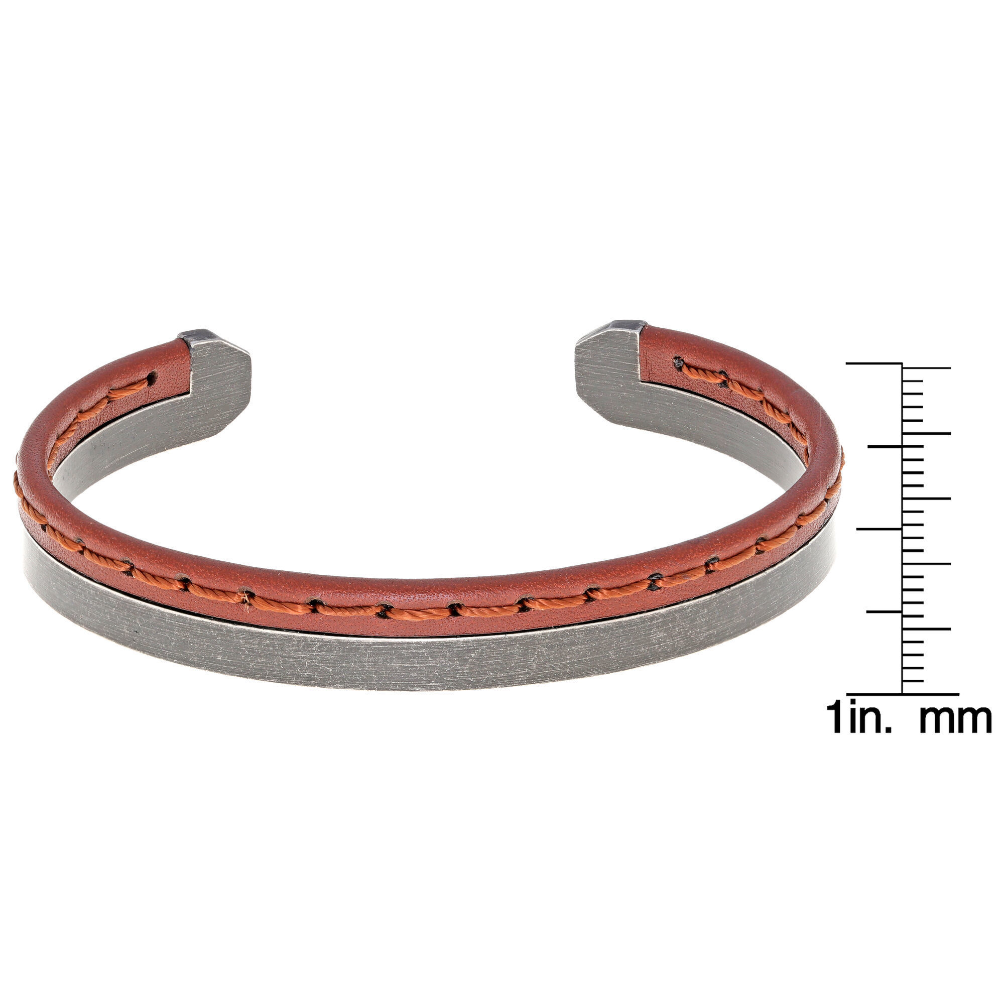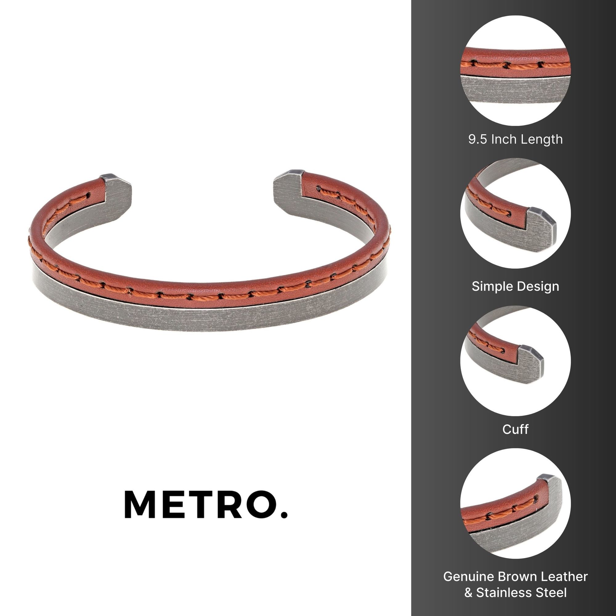 This bangle features a striking combination of rich brown leather and durable stainless steel, creating a unique and eye-catching piece. The 8.5-inch length is ideal for most wrist sizes, ensuring a comfortable fit. Whether you're dressing up for a special occasion or adding a touch of flair to your everyday outfit, this bracelet effortlessly transitions from day to night. Pair it with a casual ensemble for a laid-back vibe or wear it with a suit for a polished, refined look.