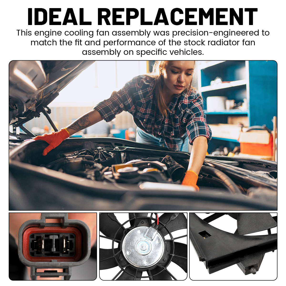 2.Ideal replacement.This engine cooling fan assembly was precision-engineered to match the fit and performance of the stock radiator fan assembly on specific vehicles.
