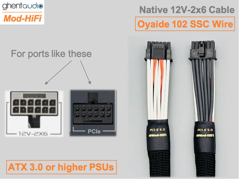 This is a native 12V-2x6 cable, could be applied to all PCIe Gen5 compatible PSUs (having the below ports) and high-end graphic cards (e.g. RTX 40’ Series and above).