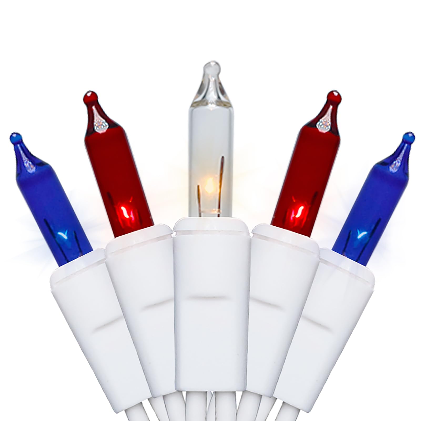 35 Count 8.5Ft White Wire Red White and Blue String Lights Incandescent Mini Christmas Lights