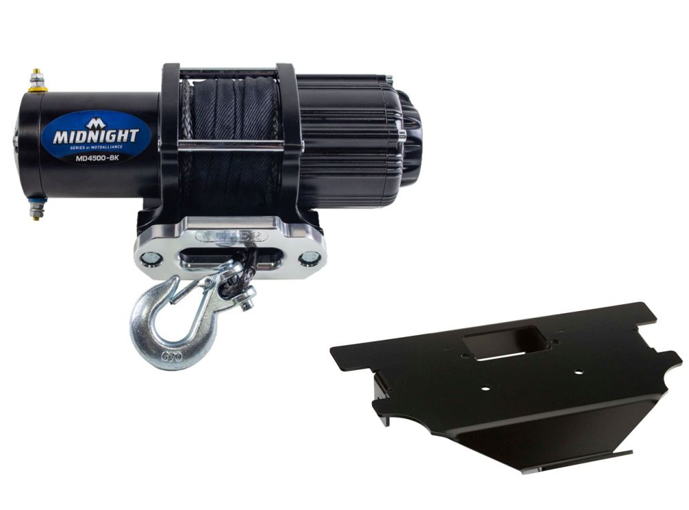 The VIPER Midnight 4,500lb Winch is a durable winch for ATVs, UTVs and Side by Sides. A great winch for snowplowing and mudding with ATV and UTVs, it has a sealed planetary metal gear train, a 1.8 horsepower permanent magnet motor, automatic brake, and stainless-steel hardware. Wireless remote switch, waterproof handle bar switch and synthetic rope are standard on this Midnight winch.