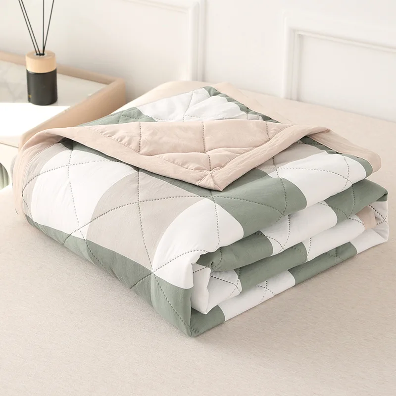 Plaid Summer Quilt Washed Cotton Air Condition Thin Comforter Blanket Bedspread for Single Double Queen King Bed Coverlet