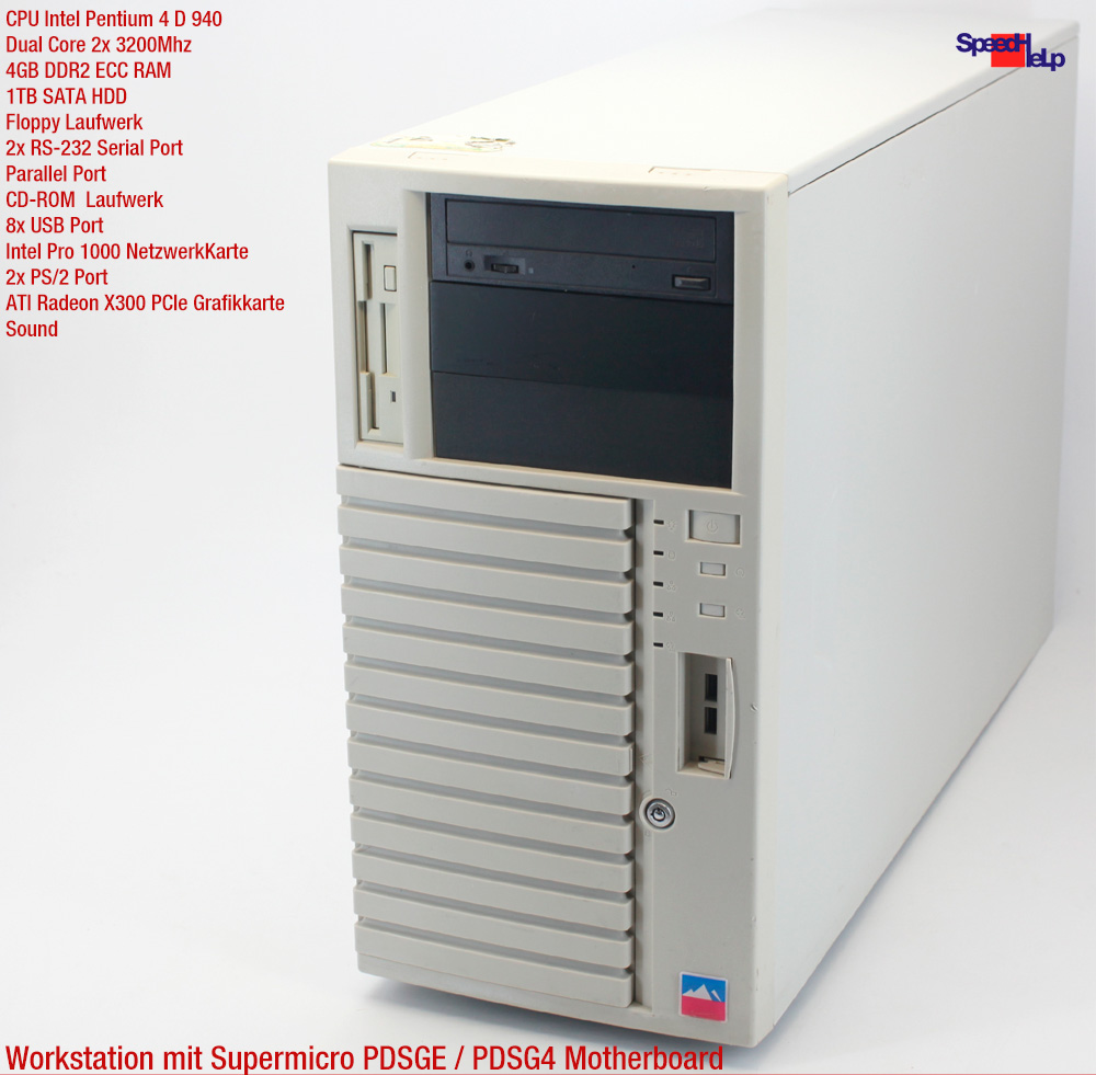 Dual Core Intel Pentium D 940 (2x 3.2GHz), 4GB DDR-2 ECC RAM, Intel 955X Chipset, 1TB SATA Festplatte,