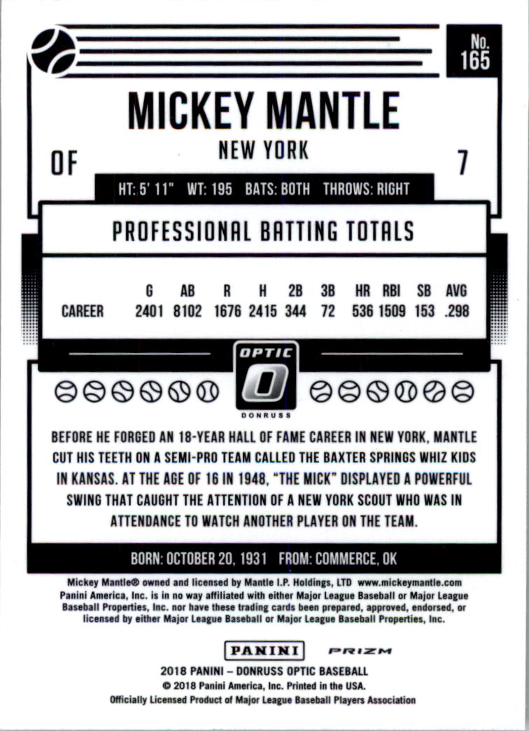 2018 Donruss Optic Variations Purple #165 Mickey Mantle - BB