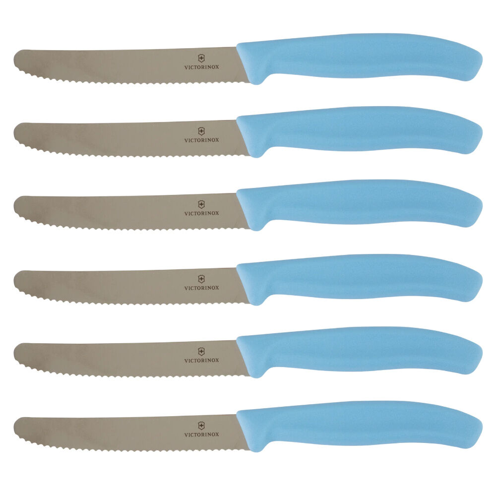 Victorinox Steak & Tomato Knife Pistol Grip 11cm | Skyline Blue Set x 6 Knives