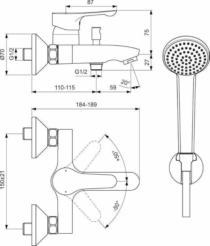 Le robinet de baignoire Ideal Standard BC676AA est conçu pour un montage mural direct.