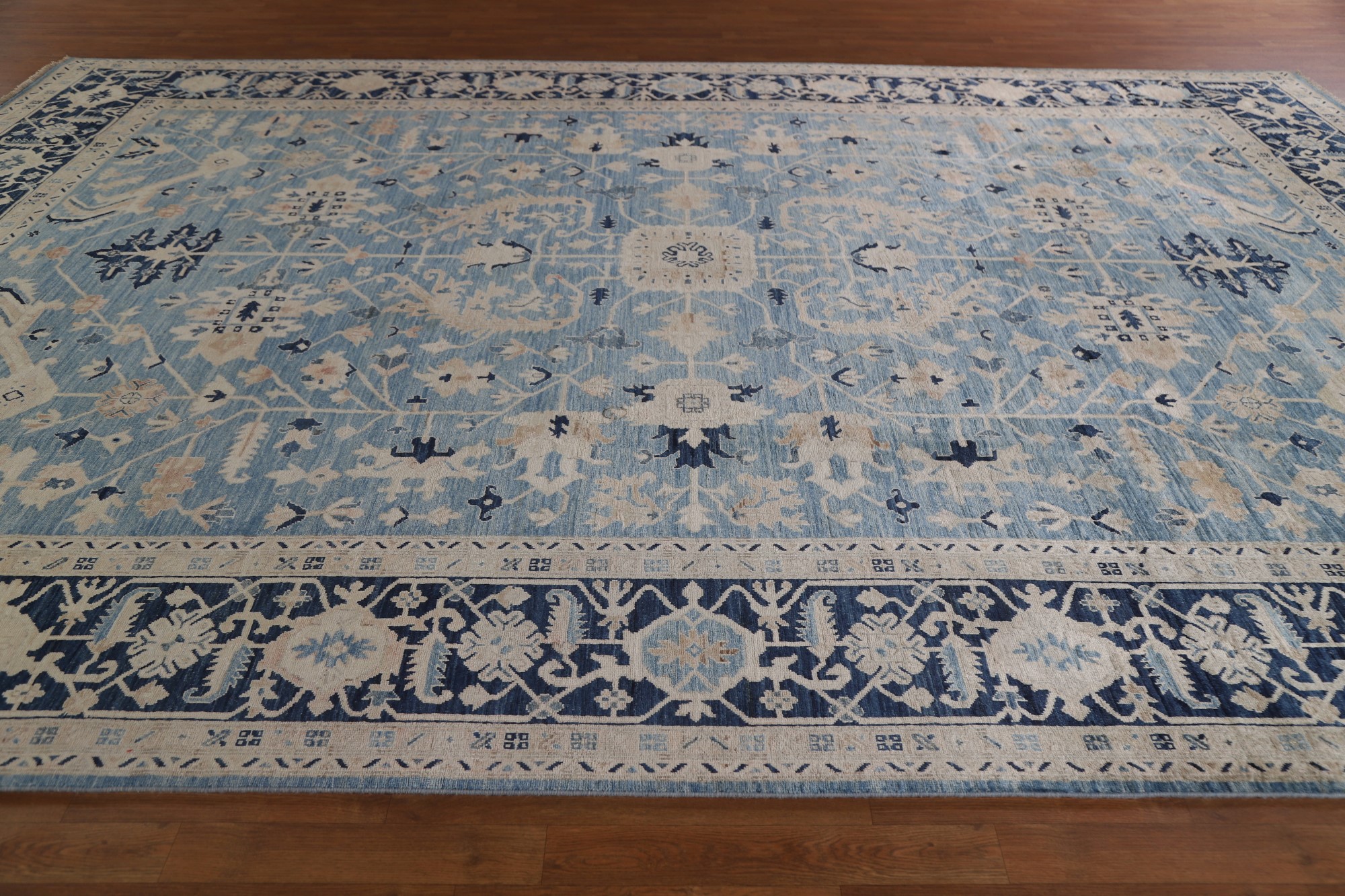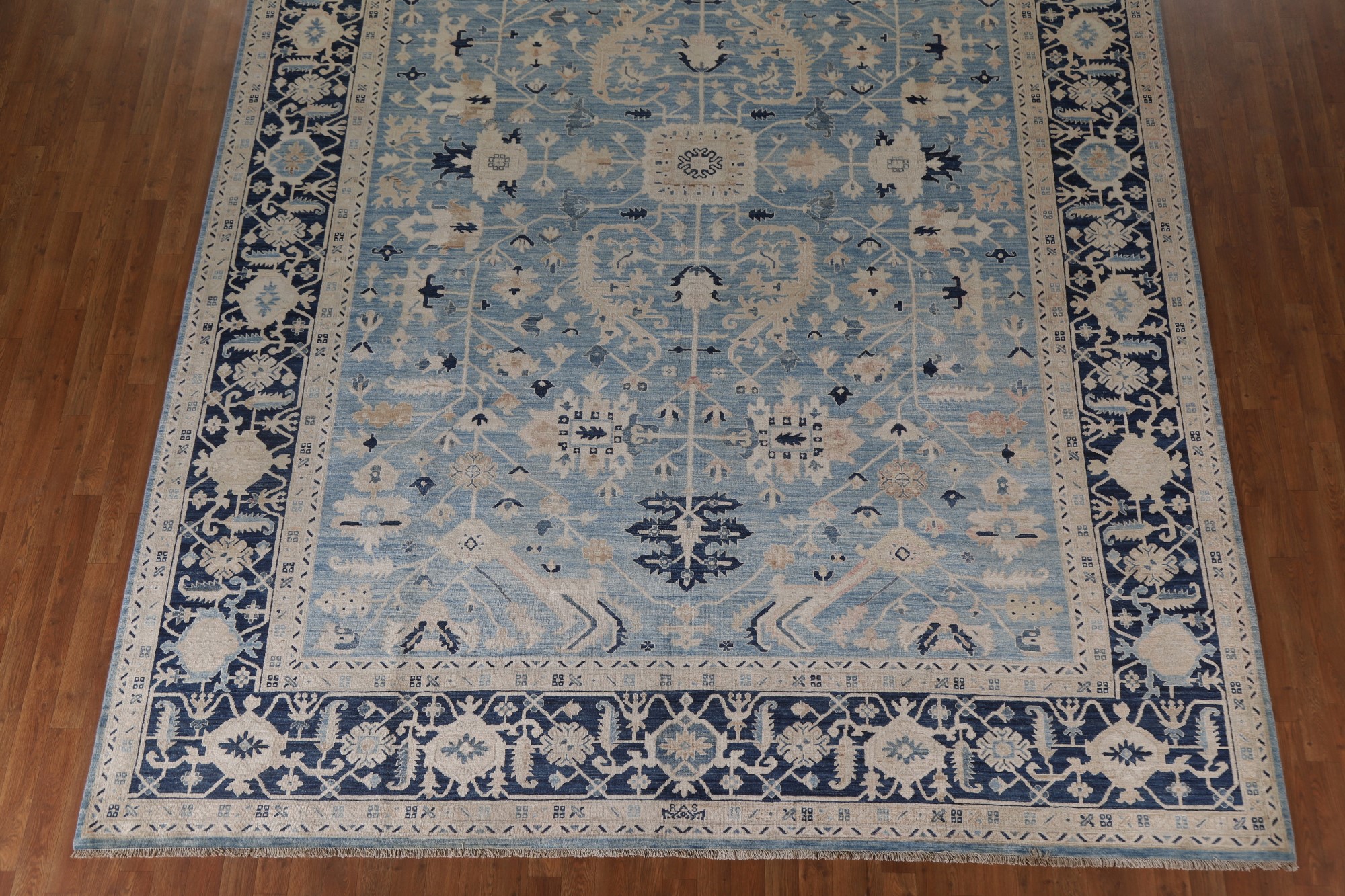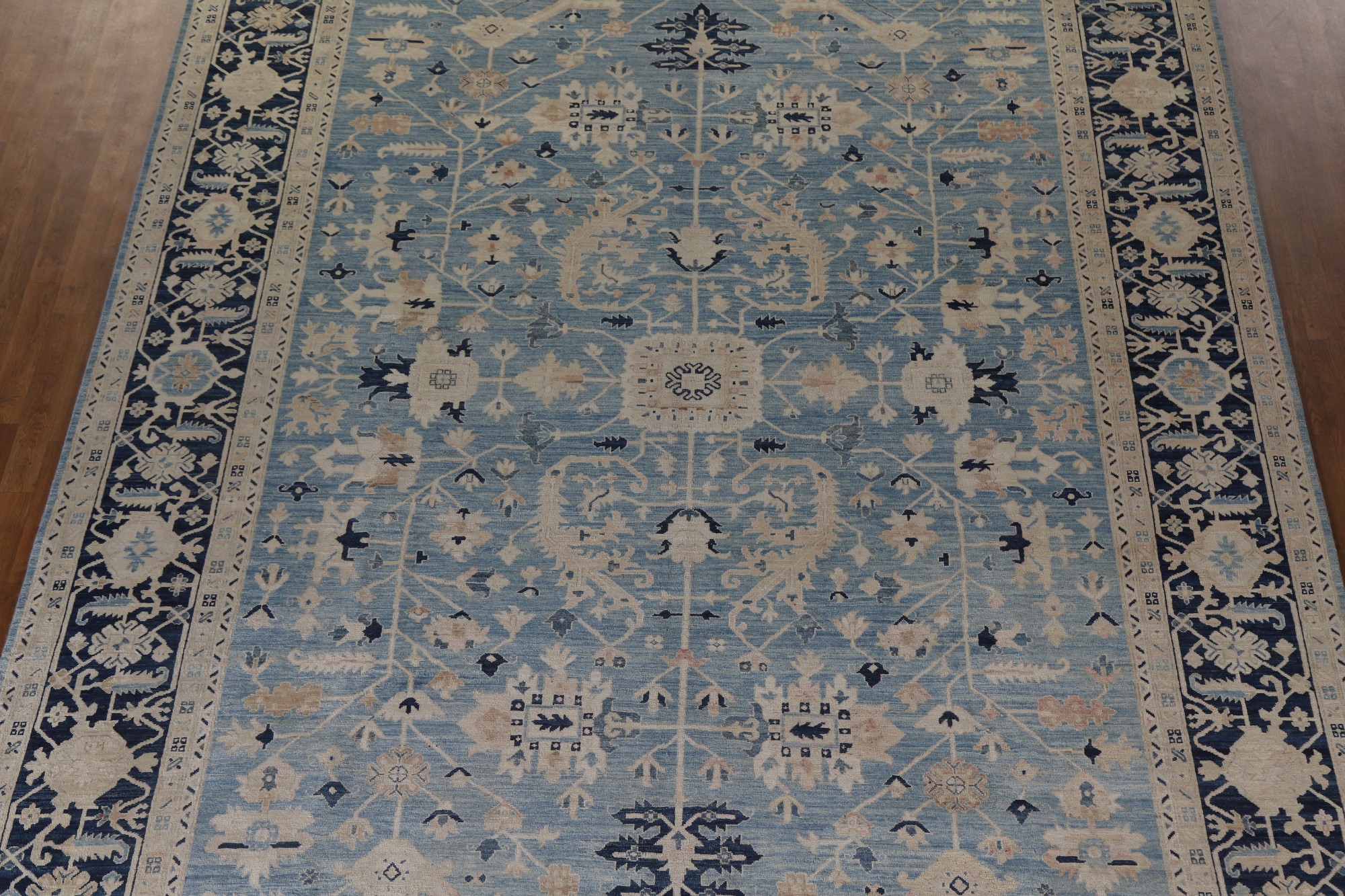 Blue Ziegler Large Area Rug 10x14 Hand-knotted Wool Traditional Floral Carpet