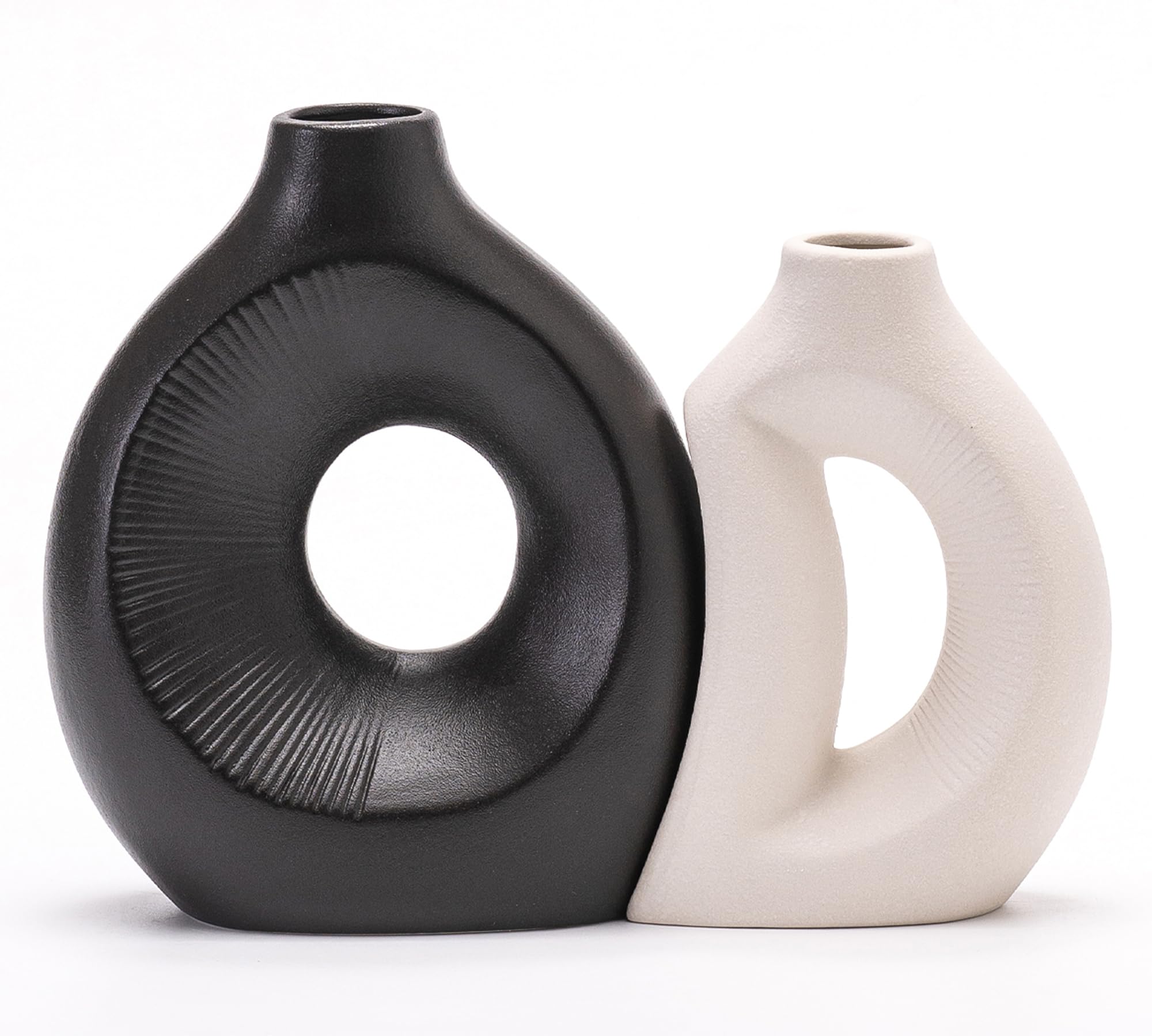 Ceramic Vase Set of 2, Hollow Out Minimalist Matte Flower Vases for Pampas Grass, Living Room, Office (Black/White)