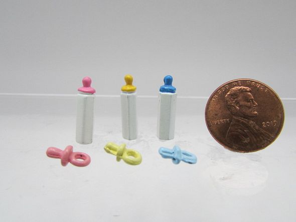 Replica baby bottle and pacifier set for your dollhouse.
