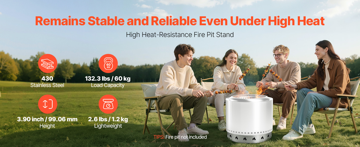 Improved Combustion Efficiency: Featuring a 3.9 inch / 99 mm height and multiple flame vent holes, this outdoor firepit stand holder increases airflow for a brighter flame. It reduces ground overheating and safeguards your lawn or deck, while minimizing smoke for better efficiency