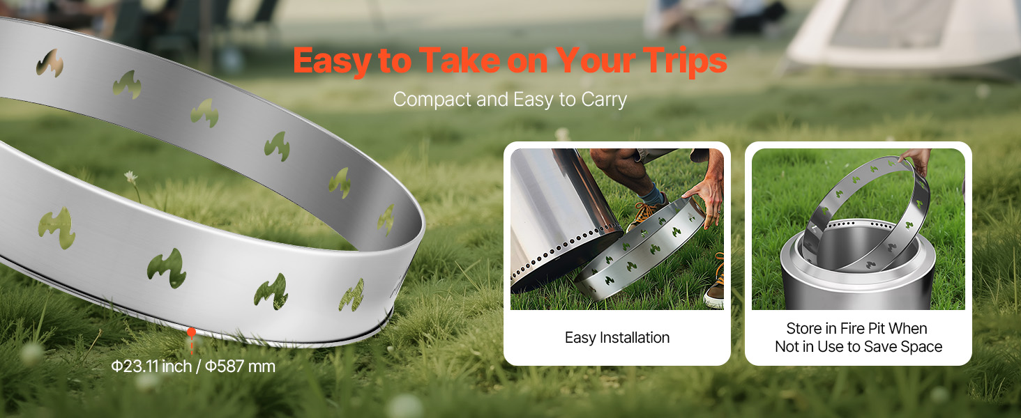 Ideal for Camping and Parties: Weighing only 2.6 lbs / 1.2 kg, this portable firepit stand is easy to carry, suitable for camping, beach parties, and indoor use. It stores compactly inside the fire pit, letting you enjoy a warm bonfire anytime, anywhere