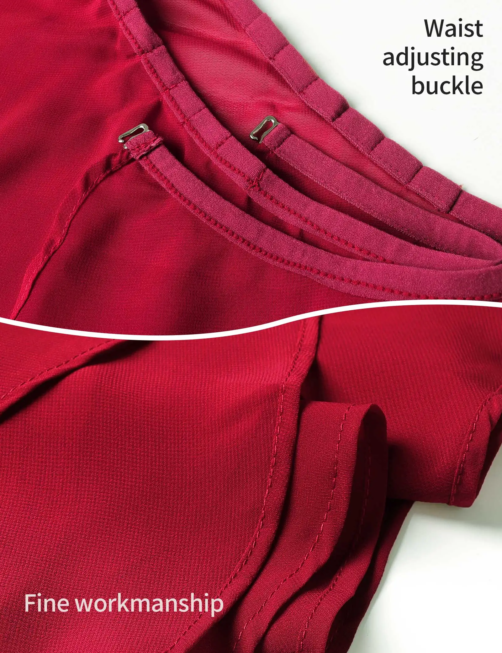 Design: Short Front and Long Back, Adjustable Buckle Design at Waist, Semi-sheer Hemline