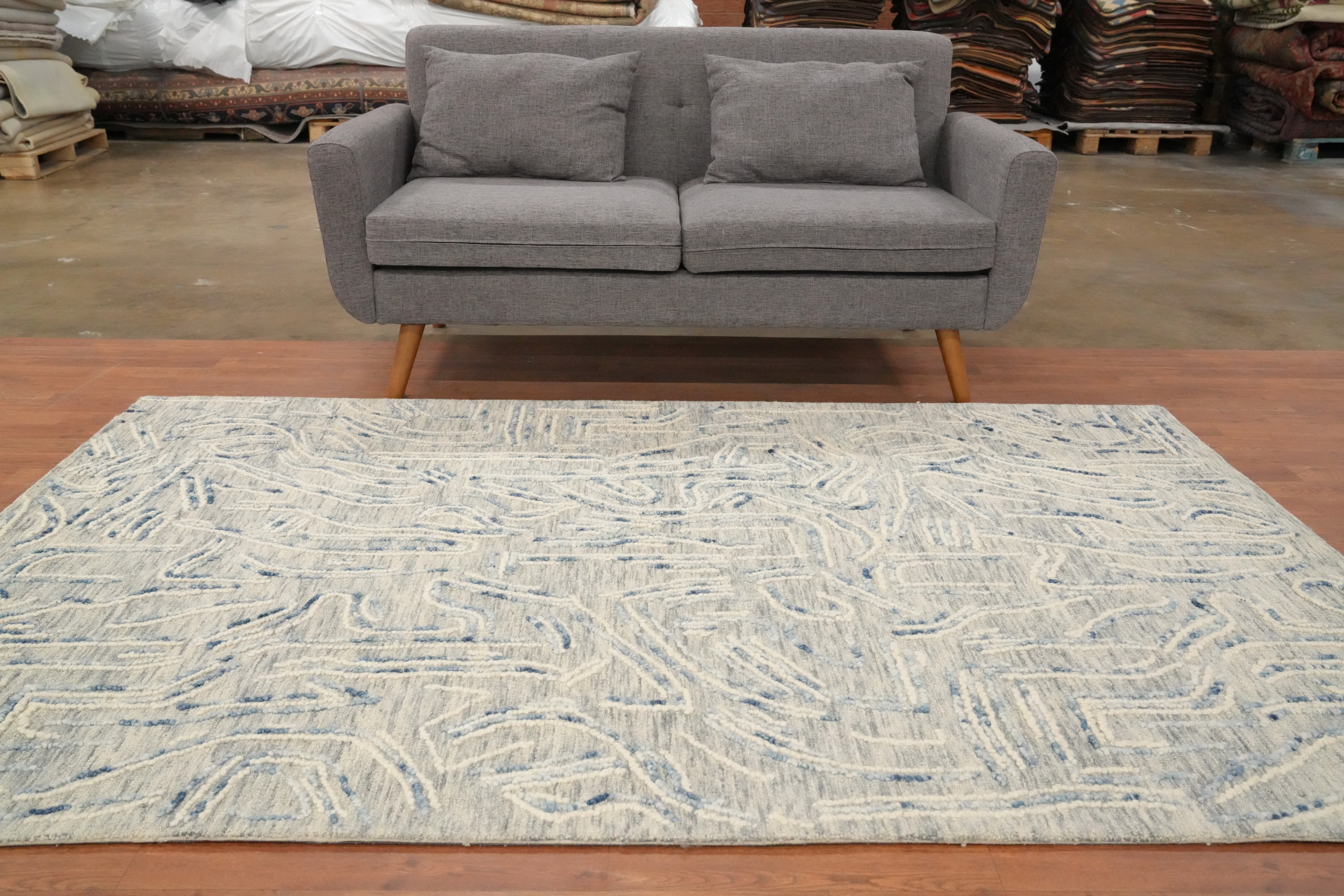 Contemporary Abstract Oriental Area Rug 5x8 for Modern Interiors Hand-Tufted Rug