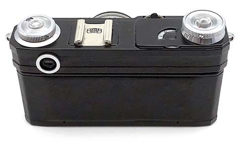 This is a rangefinder camera has the metallic shutter of "jalousie" type, movement of shutters is top-down along the short side of a shot. Exposures are V, 2, 5, 10, 25, 50, 100, 125, 250, 500, 1000. The shutter is equipped with the automatic releaser with speed 9-15 sec. The camera is completed with the standard lens "Sonnar" copy. Both simplex and double-cylinder cassettes can be used.