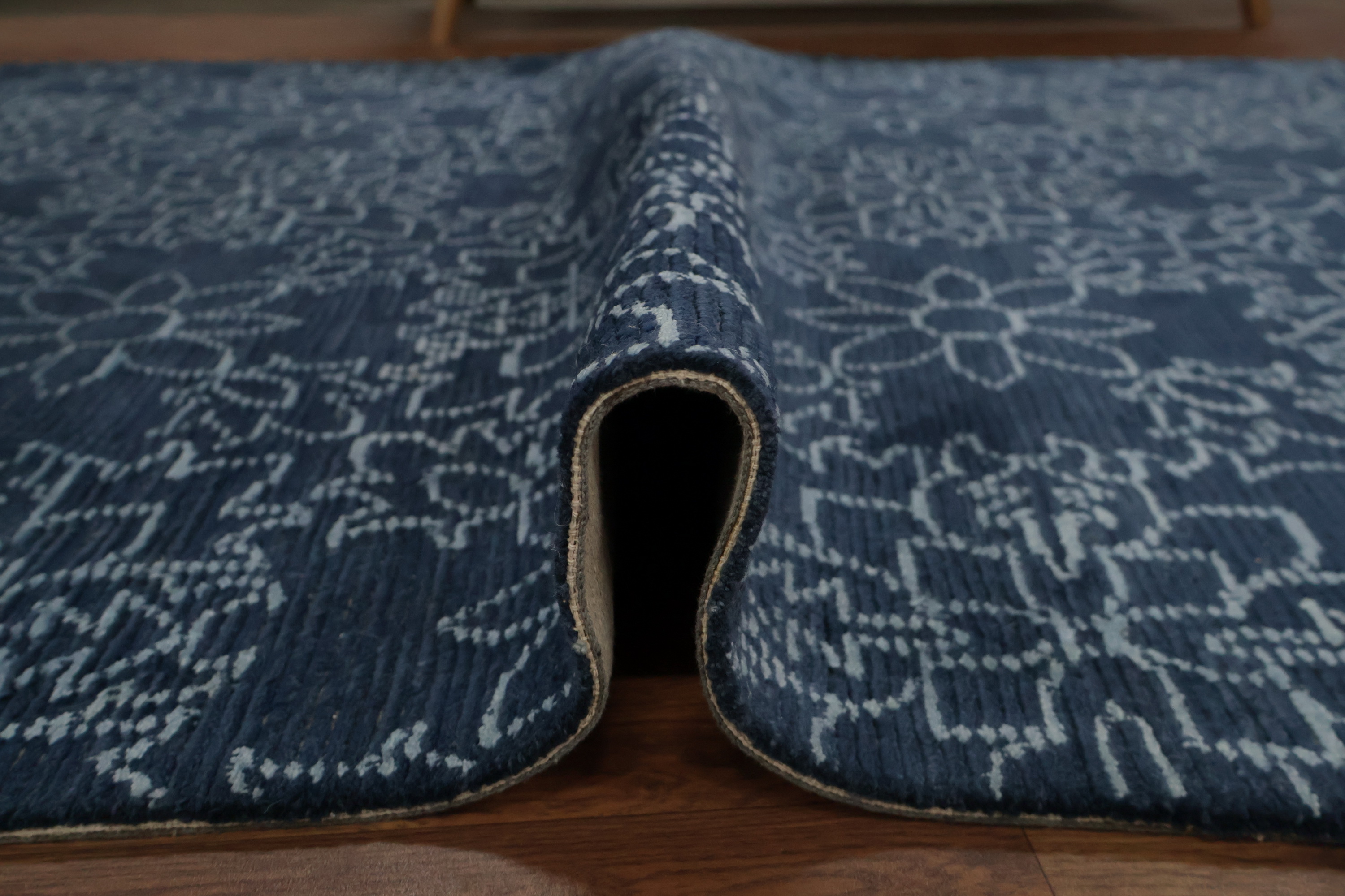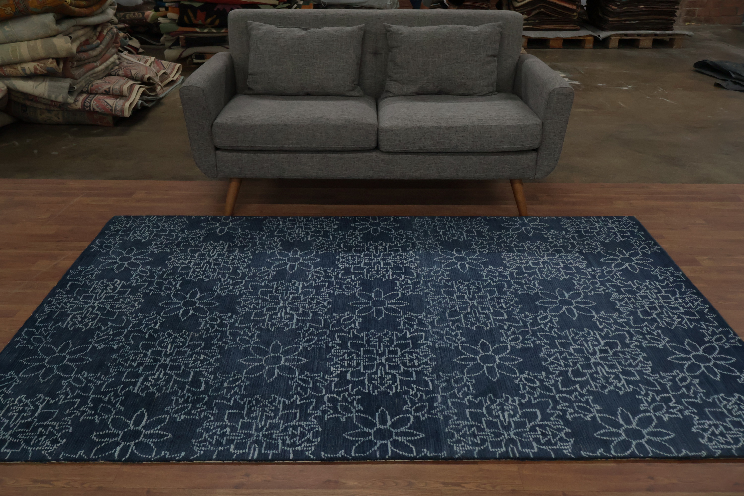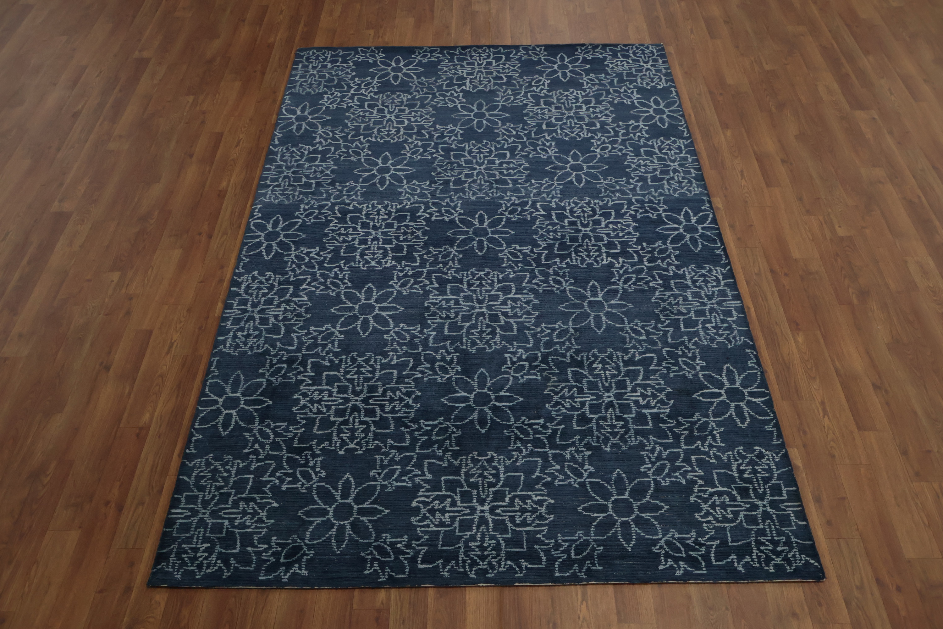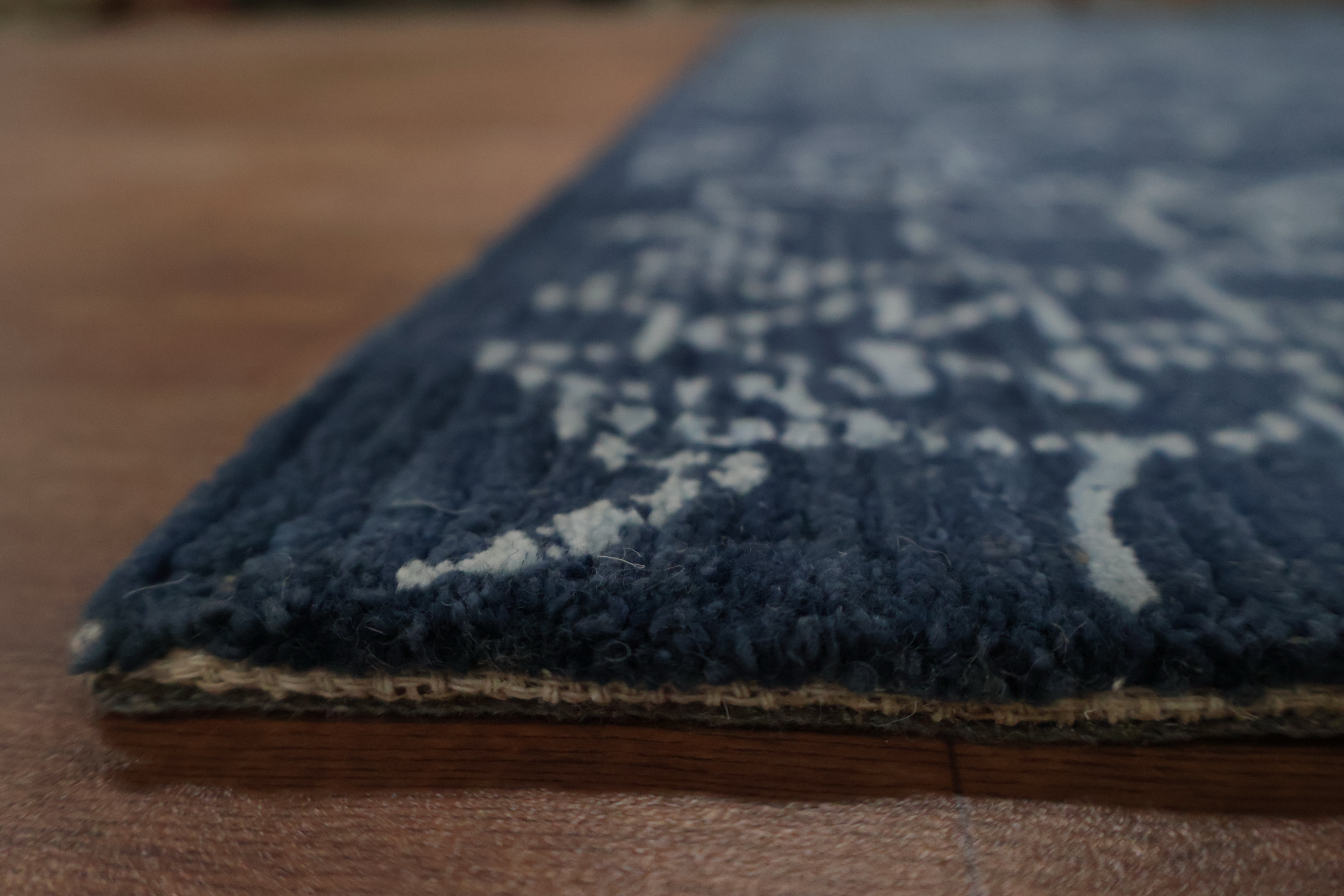 Blue Intricate Design Area Rug 5x8 Hand-Tufted Wool with Elegant Floral Motifs