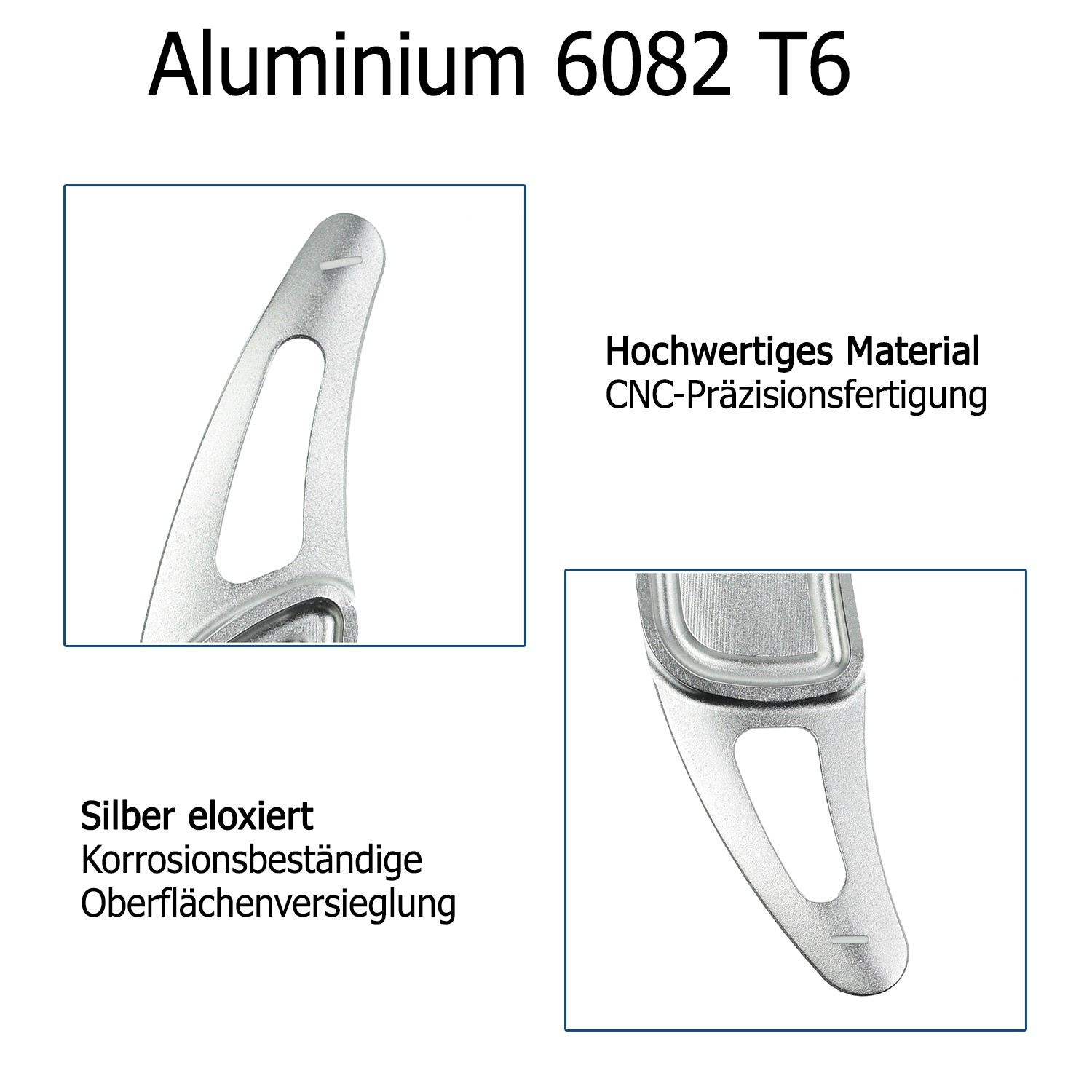 Schaltwippen-Verlängerungen aus CNC-gefrästem Flugzeugaluminium – ultraleicht, extrem stabil und mit edler eloxierter Oberfläche. Perfekte Passform für nahtlose Integration ins Lenkrad. Einfache Montage in Minuten (SIEHE "Technische Details")