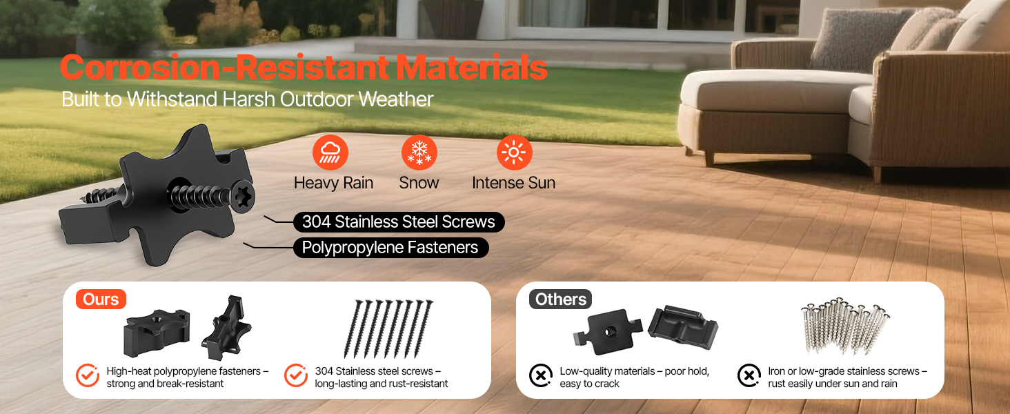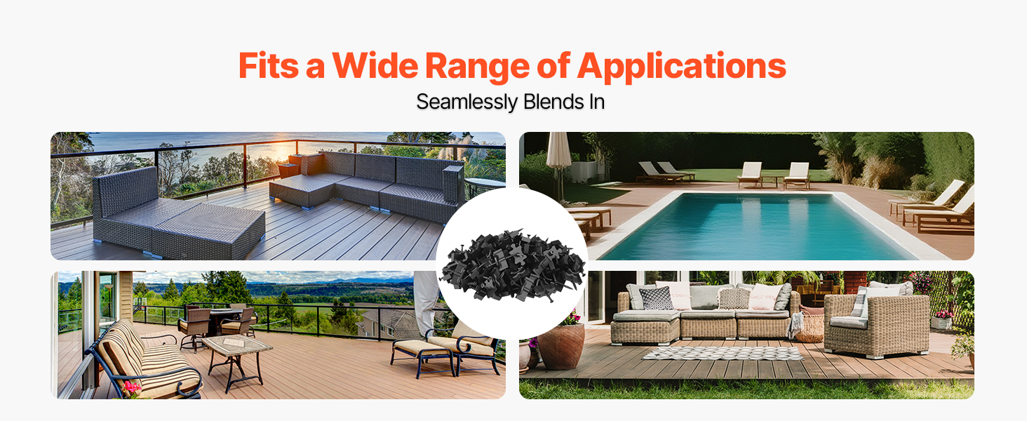 Suitable for Multiple Areas: Perfect for garden decks, patios, balconies, and other outdoor spaces. These composite deck fasteners make it simple to create a neat, cozy, and well-arranged outdoor environment.