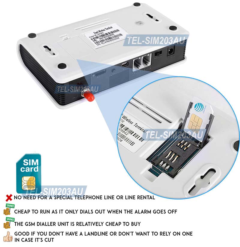 - Secure your alarm line by using the cellular phone service and prevent the cut-off on the phone line by intruders.