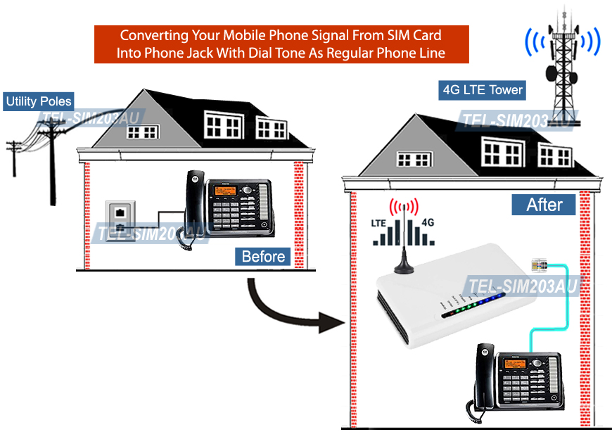 This 4G voice LTE cellular SIM card to RJ-11 phone jack adapter is a great mobile telephony solution for converting the 4G LTE or 3G WCDMA mobile phone signal to PSTN analog dial tone signal.