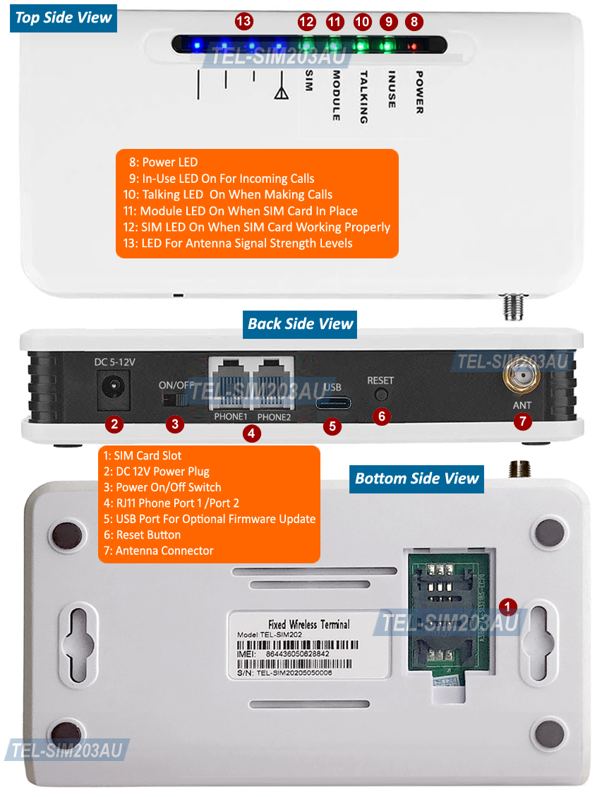 4G LTE 3G WCDMA Mobile Phone SIM Card To PSTN Landline Wired Phone RJ11 Adapter for Australia, Mexico, New Zealand and South America