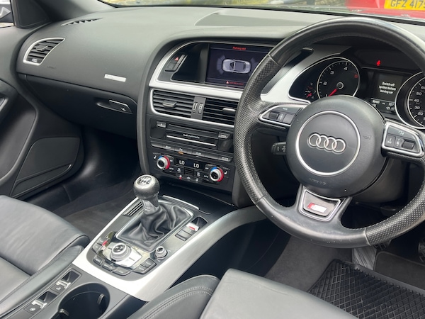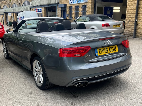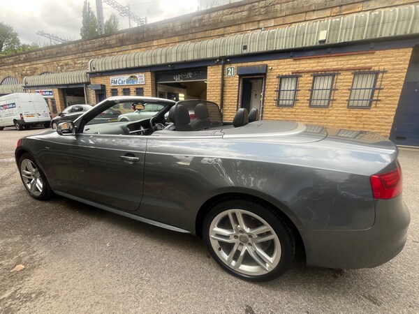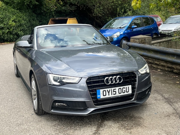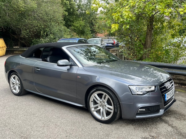 This 2015 (15) AUDI A5 2.0 TDI S line Convertible 2dr Diesel 6 Speed Manual (s/s) (150 ps) Has Only Covered 90000 Miles by 2 Former Keepers ( Last Owner Since 2017 ) Comes Complete With Full Service History ( All Important Cambelt Changed @ 71388 Miles )2xRemote Keys,Mot Until 11th June 2026 & All Documents,Hpi Clear,Finished in Monsoon Grey Metallic With Black Sports Leather Upholstey,Heated Front Seats,Audi Air Scarfs,18in Alloy Wheels - 5-Double-Spoke Design, AUX-IN Socket, Alarm - Thatcham Category 1, Audi Parking System Plus - Front, Audi Parking System Plus - Rear, Audi Sound System Speaker Package, Auto Opening Boot Lid, Auto-Dimming Rear-View Mirror, Black Hood, Car Jack, Climate Control - Electronic 3-Zone, Cruise Control, DAB Digital Radio, Display Screen Colour 7in High Resolution, Display Screen Colour TFT 7in High Resolution, Door Mirrors - Electrically Adjustable and Heated, Door Sill Trims - S Line, ESP - Electronic Stability Programme, Electromechanical Parking Brake, Exterior Aluminium Package, First Aid Kit, Front Fog Lights, Fully Automatic Acoustic Hood with LED Passenger Reading Lights, Gear Knob - Perforated Leather, Headlights - Bi-Xenon Plus, Headlights - Light Sensor, Headlights - Range Adjustment, Headlights Washers, Heated Front Seats, Inlays - Matt Brushed Aluminium, MMI Navigation Plus, Mobile Telephone Preparation - Bluetooth Interface, Pollen Filter, Rest Recommendation System, Speakers x10, Split Folding Rear Seat, Sport Suspension, Styling Package - S line Exterior, Subwoofer, Tyre Pressure Monitoring System, Warning Triangle, Wind Deflector ++++ FINANACE AVAILABLE ++++ PART EXCHANGE WELCOME +++