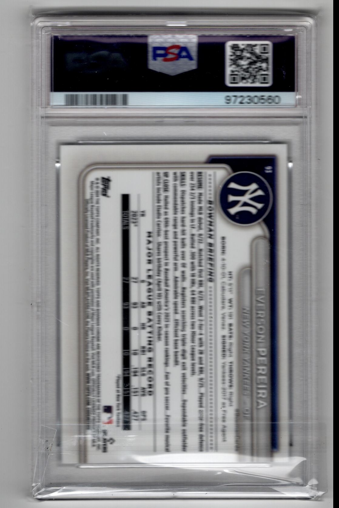 2024 Bowman Mega Box Chrome MOJO Everson Peirera RC PSA 10 New York Yankees #93