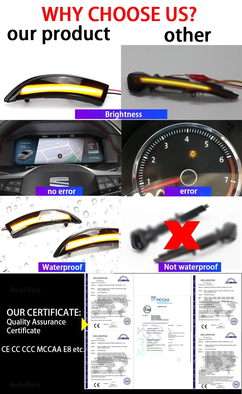 -Dynamic turn signal,scroll smoothly.Easier to be seen by other drivers when you are turning right/left.
