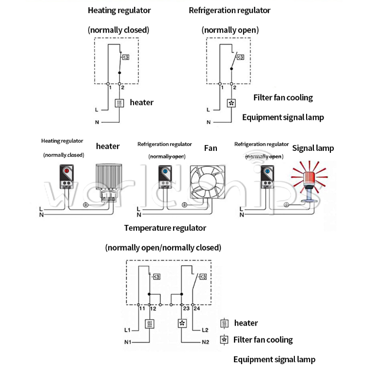 2. The small mechanical thermostat is designed to control electric heaters or cooling fans in electrical cabinets