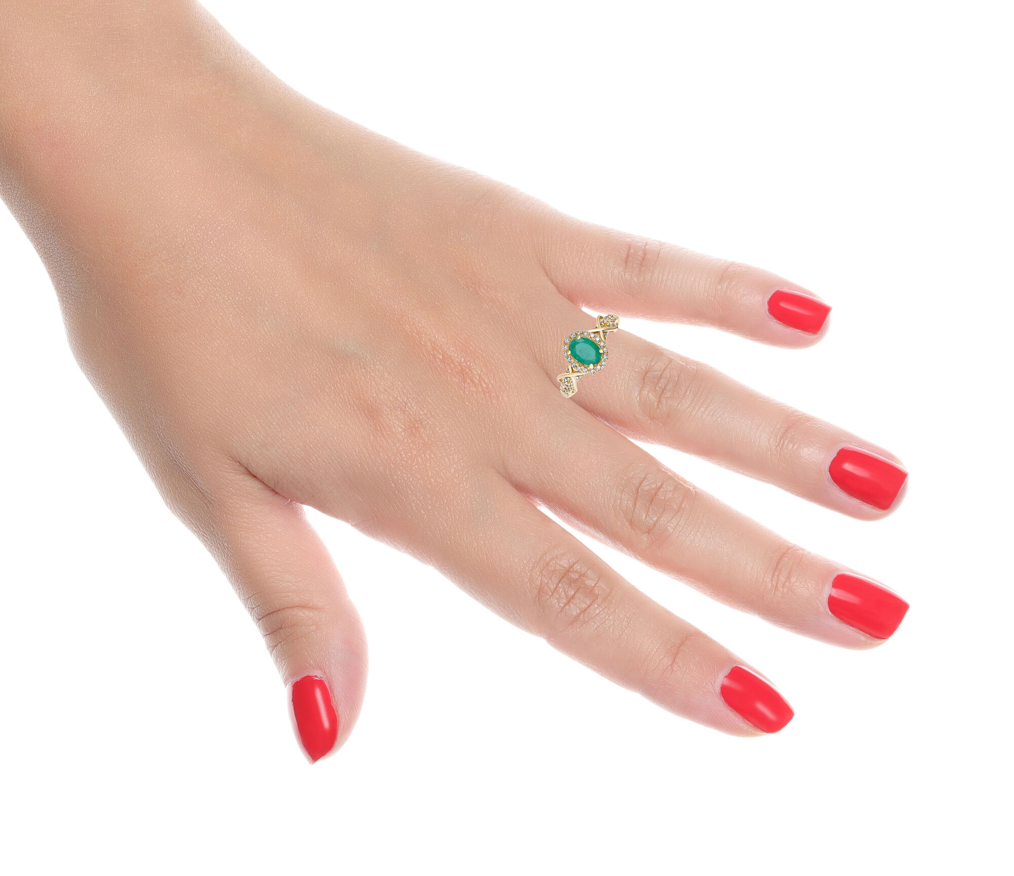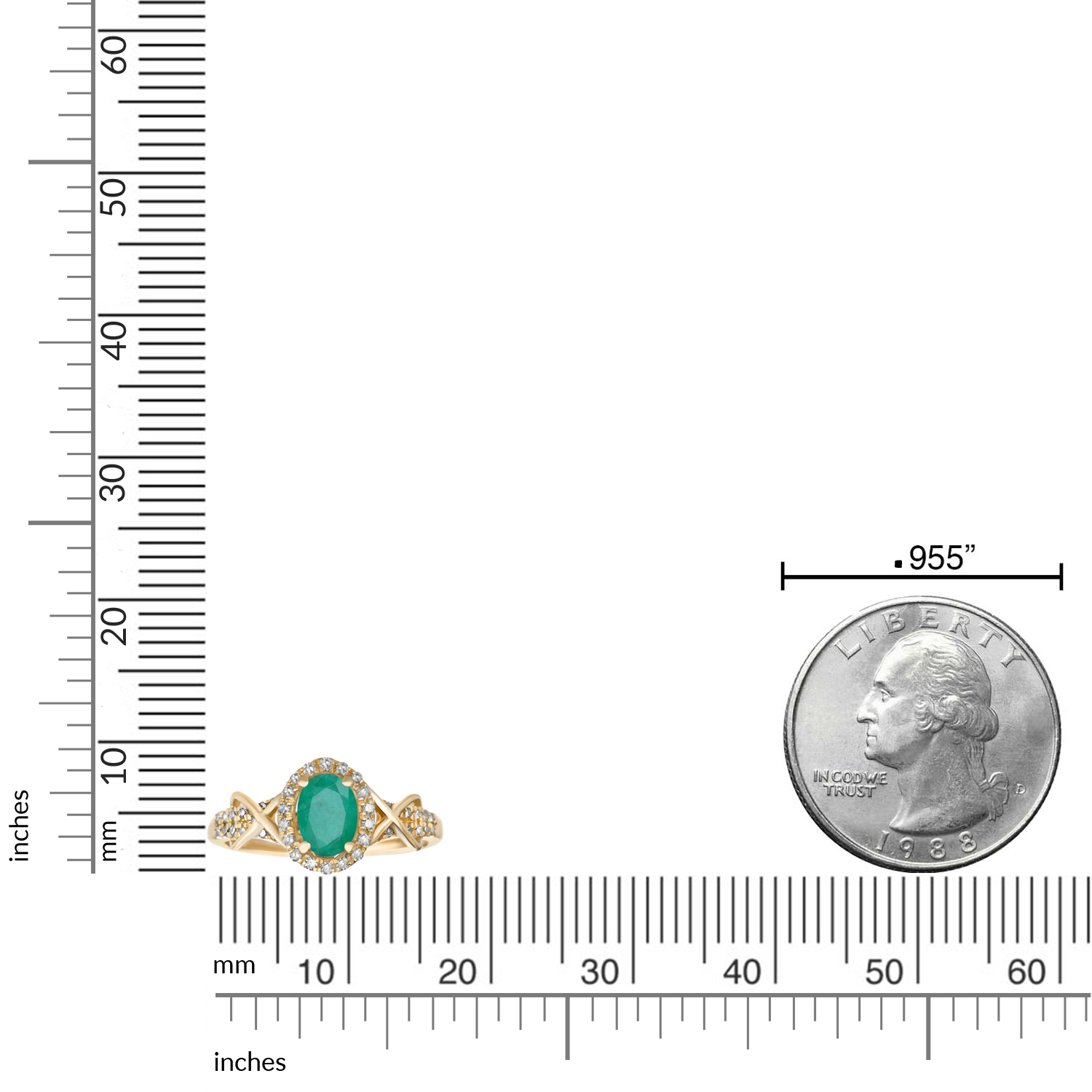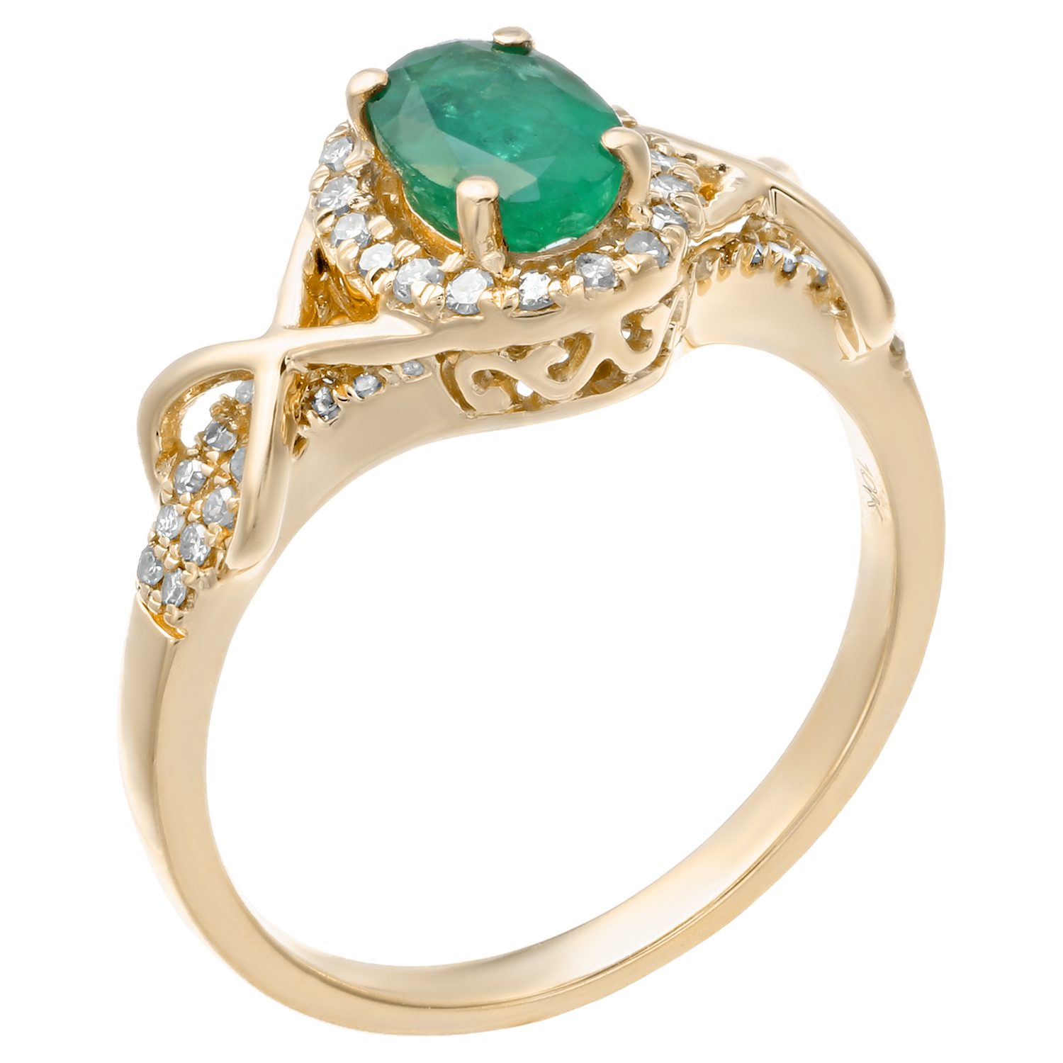 10K Yellow Gold, Green Emerald Diamond Oval Ring (.24cttw, I-J, I2-I3) Size 7