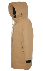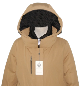 - Hood with adjustable draw cord and metal stopper