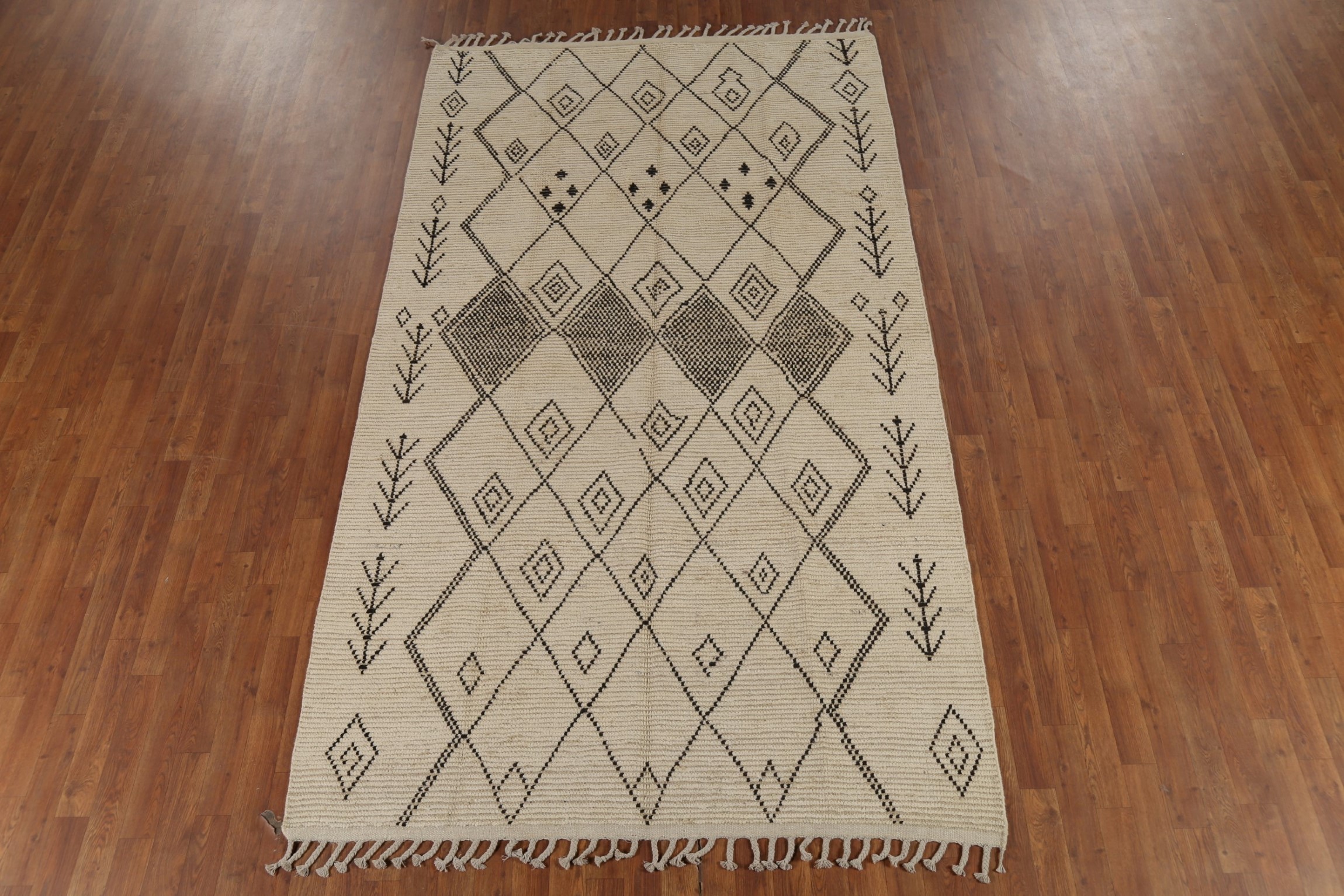 Moroccan Living Room Area Rug 6x10 Trellis Wool Ivory Home Decor Oriental Carpet