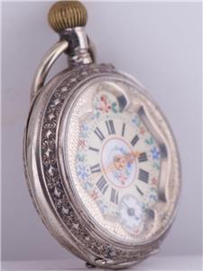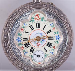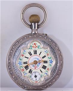 Je suis heureux d'offrir de ma collection privée ceci Rare et hautement collectionnelle Antique French French Hand Gravy Silver Pocket Watch conçu spécifiquement pour le marché chinois pendant la dynastie Qing, vers les années 1890. Cette montre propose un cadran en émail fantaisie peint à la main exquis, présentant un savoir-faire exceptionnel et une signification historique.