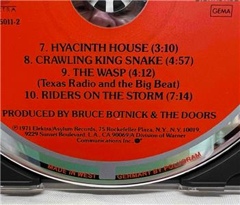 This is the rare and highly collectible West German Polygram pressed Elektra/Asylum EKS 75011-2 copy of The Doors "L.A. Woman" with the "Target" design CD disc face. If you like this classic recording, this is a rare treat as it's about as good as it gets musically. "Target" printed CDs are sought for their outstanding audio quality, and this one delivers.