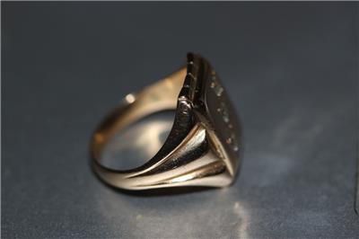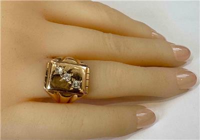 Hallmarks: No visible stamped, but gold has been tested with nitric acid for purity. Guaranteed solid gold, not plated or gold-filled. According to our test ring tests a little above 14k, however, we have listed the ring as 14k.