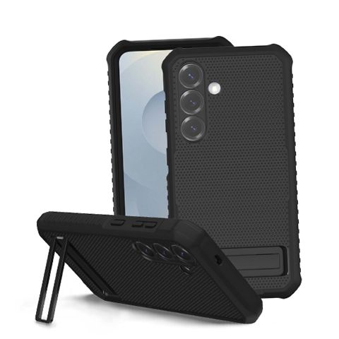 Onn. WIA25P36010084 Rugged Phone Case with Built-In Kickstand for Samsung Galaxy S25+ - Black