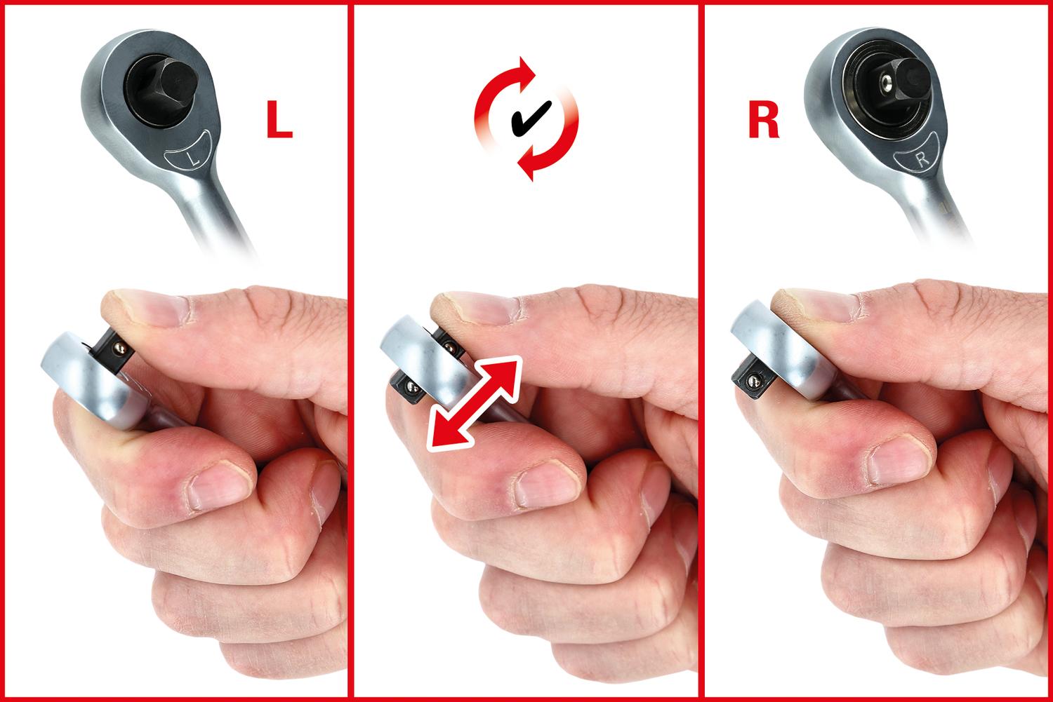 - unverlierbarem Durchsteckvierkant für Rechts- und Linksanzug