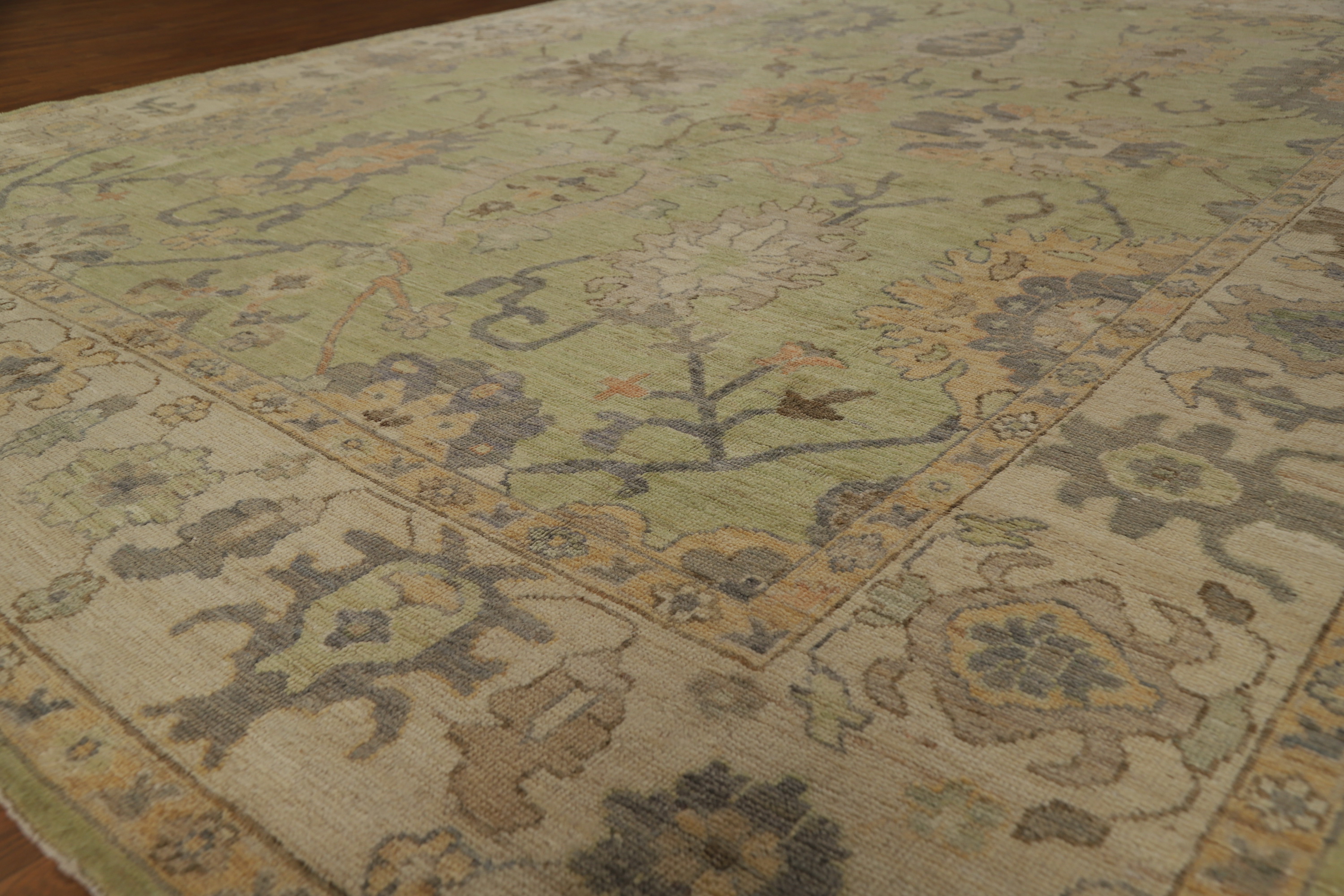Handmade Green Oushak Turkish Rug 9x12 Ft Transitional Vegetable Dye Area Rug