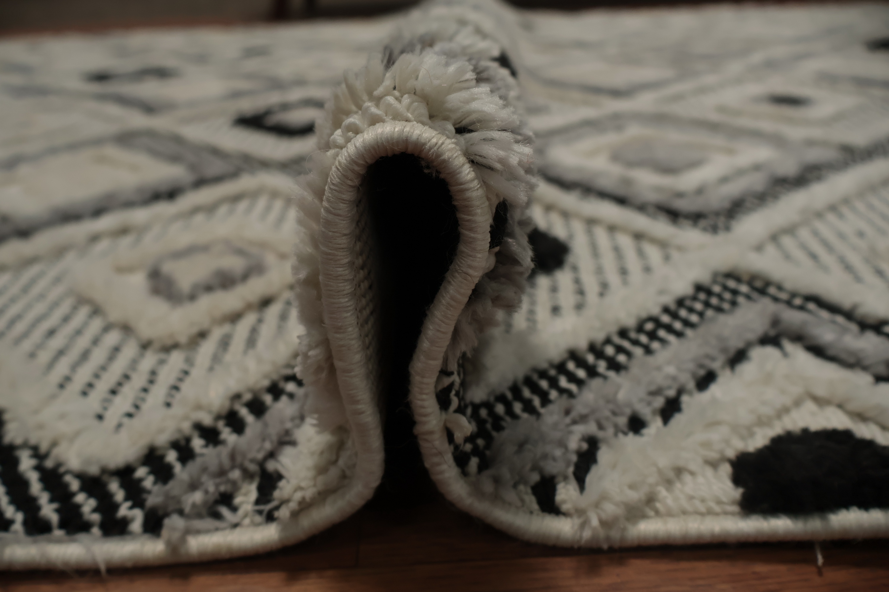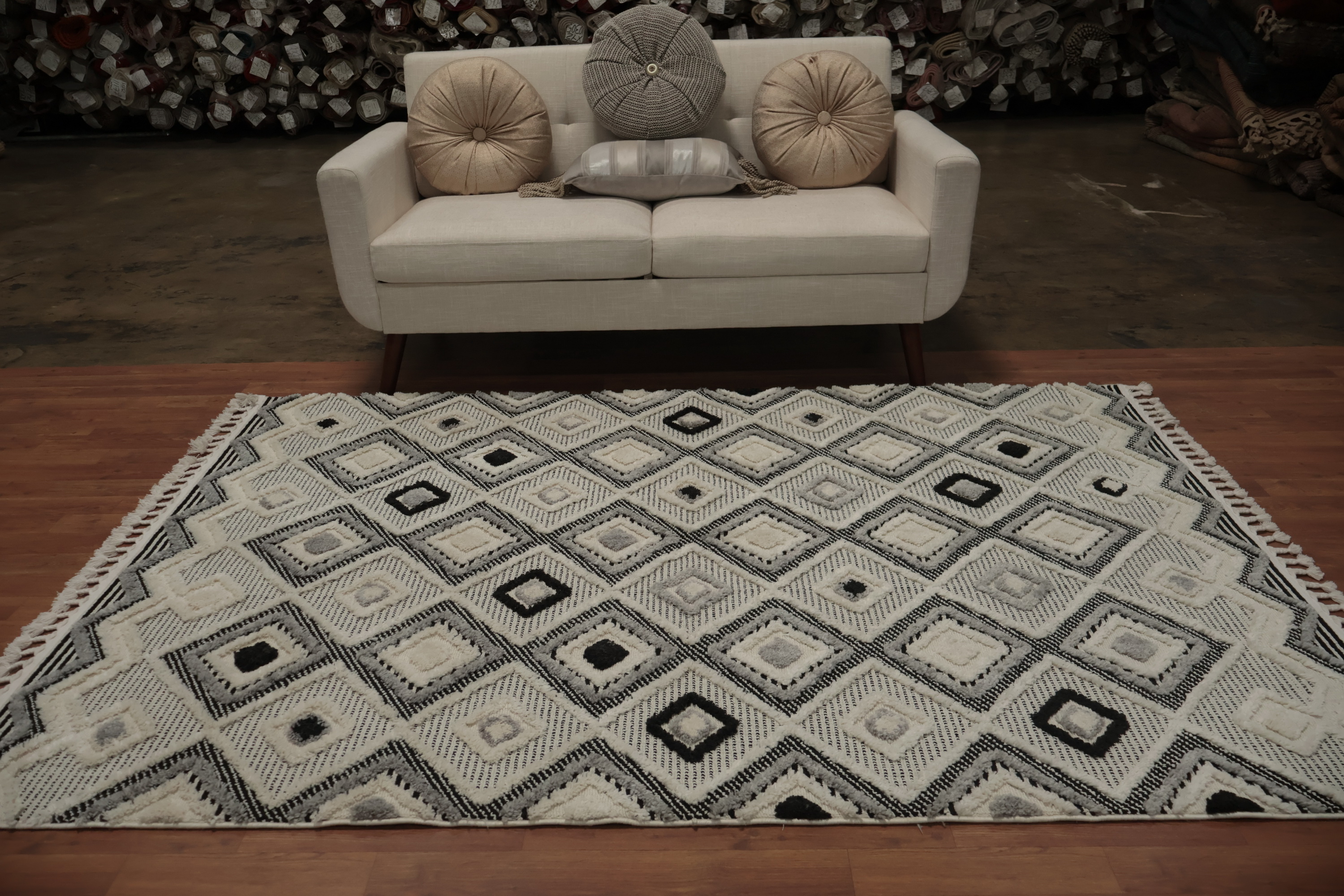 Geometric Modern Turkish Area Rug 5x8 Ft Machine Made Jute Oriental Carpet
