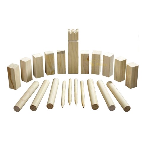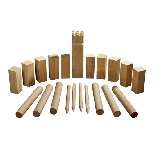 Un gran juego de bolos en un aspecto natural y material de alta calidad es súper adecuado para el jardín local.