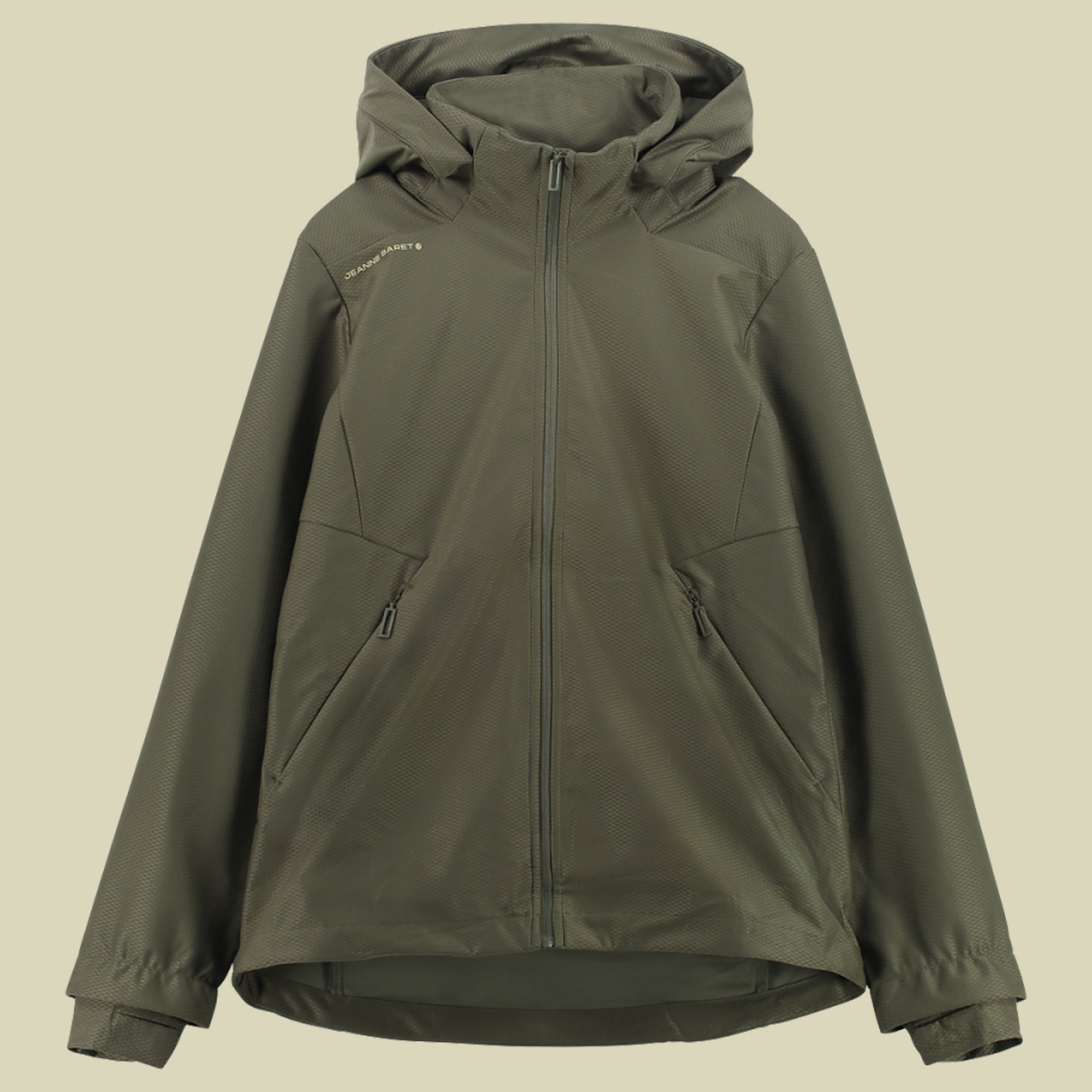 - Ausstattung: zweifach verstellbare Kapuze (Breite und Höhe); elastische Einsätze; elastische Abschlüsse an Saum und Ärmeln; Reißverschlusstaschen vorne; Aufhängeschlaufe außen am Kragen; Kinnschutz; durchgehender nahtverdeckter YKK-Spiralreißverschluss