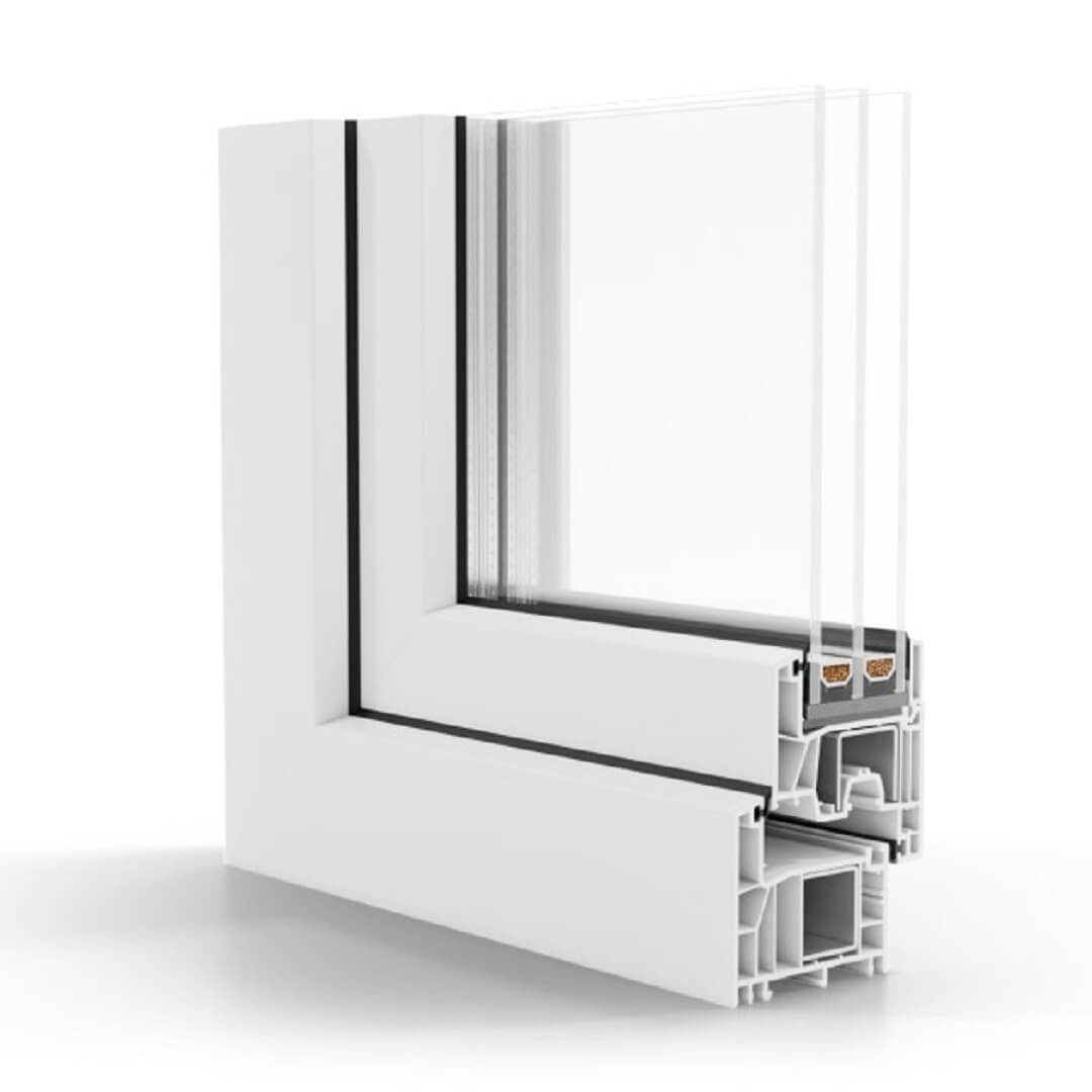 Das Fensterprofil greenEvolution 76 besitzt ein 5 Kammersystem mit 2 Anschlagsdichtungen sowie eine Bautiefe von 76mm. Wahlweise kann eine 2-fach oder 3-fach Verglasung konfiguriert werden. Die hervorragende Wärmedämmung sorgt so für ein angenehmes Wohnraumklima bei Ihnen Zuhause und senken die Energiekosten.