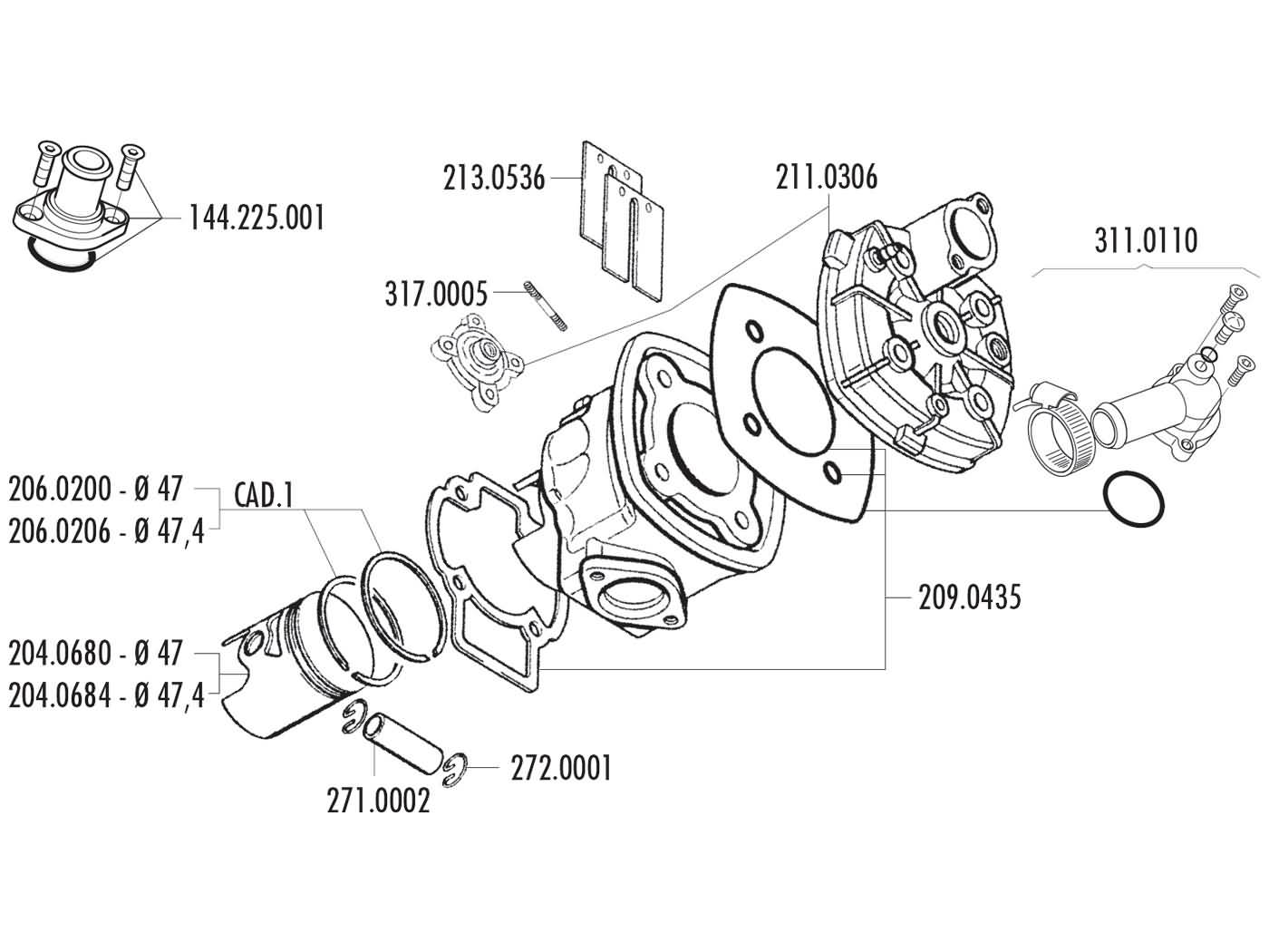 140.0183 POLINI PIAGGIO QUARTZ – NRG – ZIP SP H2O D.47 KIT