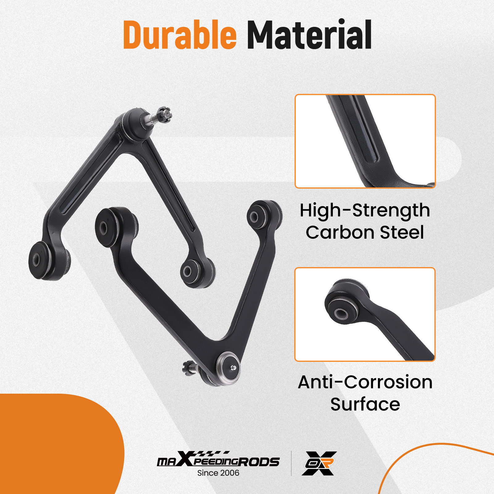 * Premium Components: Includes premium ball joints and high-quality rubber bushings for superior performance.