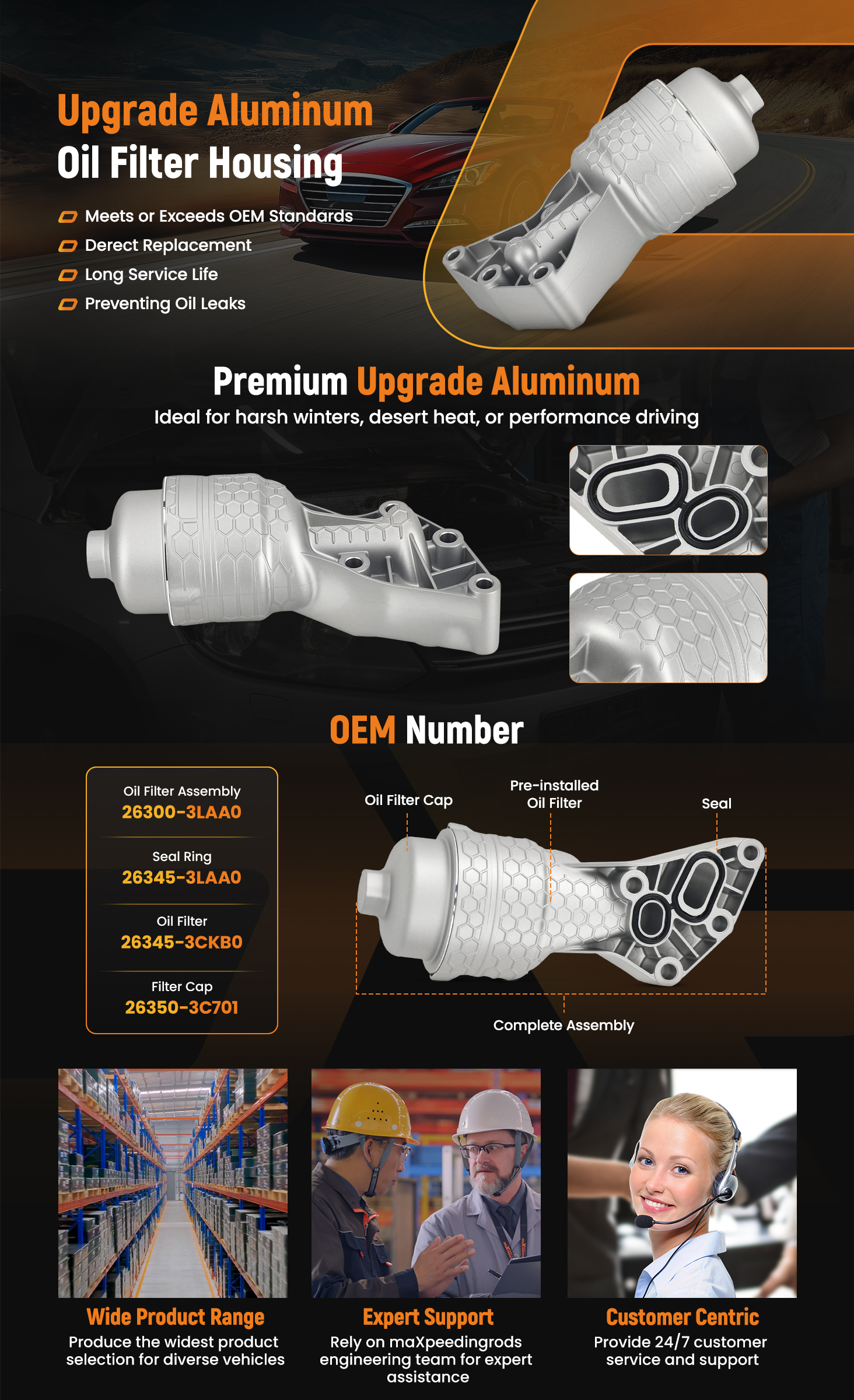 -Convenient replacement: If aging or damage occurs, replacing the Oil Filter Housing as a whole is usually more efficient than repairing it separately