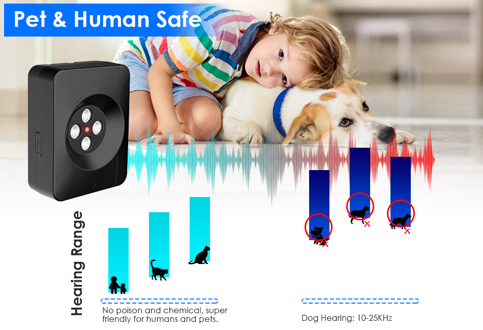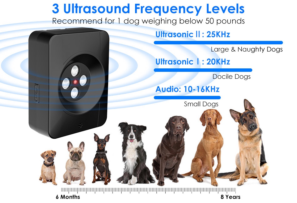 - Safe For Human & Pet:No poison and chemical. The sonic bark emits ultrasonic sounds that are friendly to human beings and can be heard by your dog but cannot hurt it.