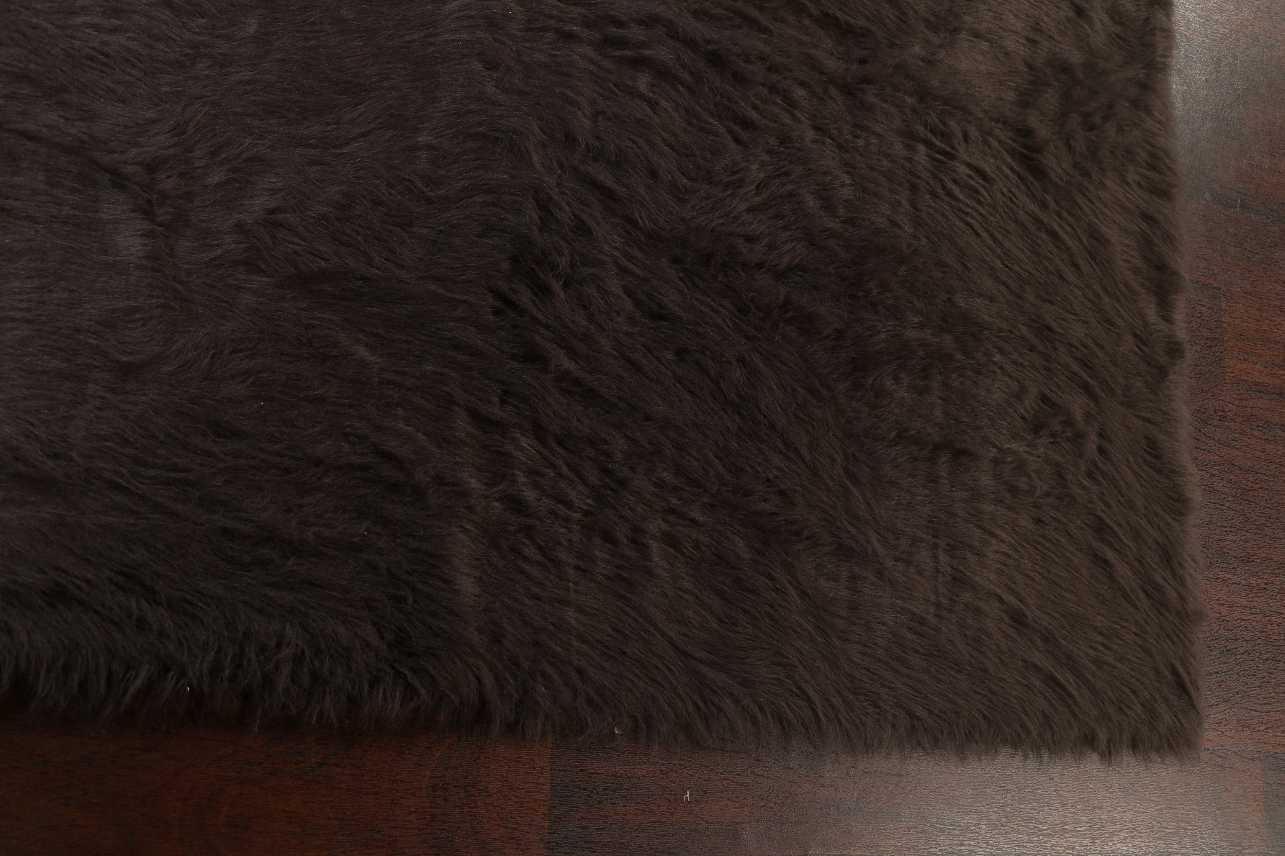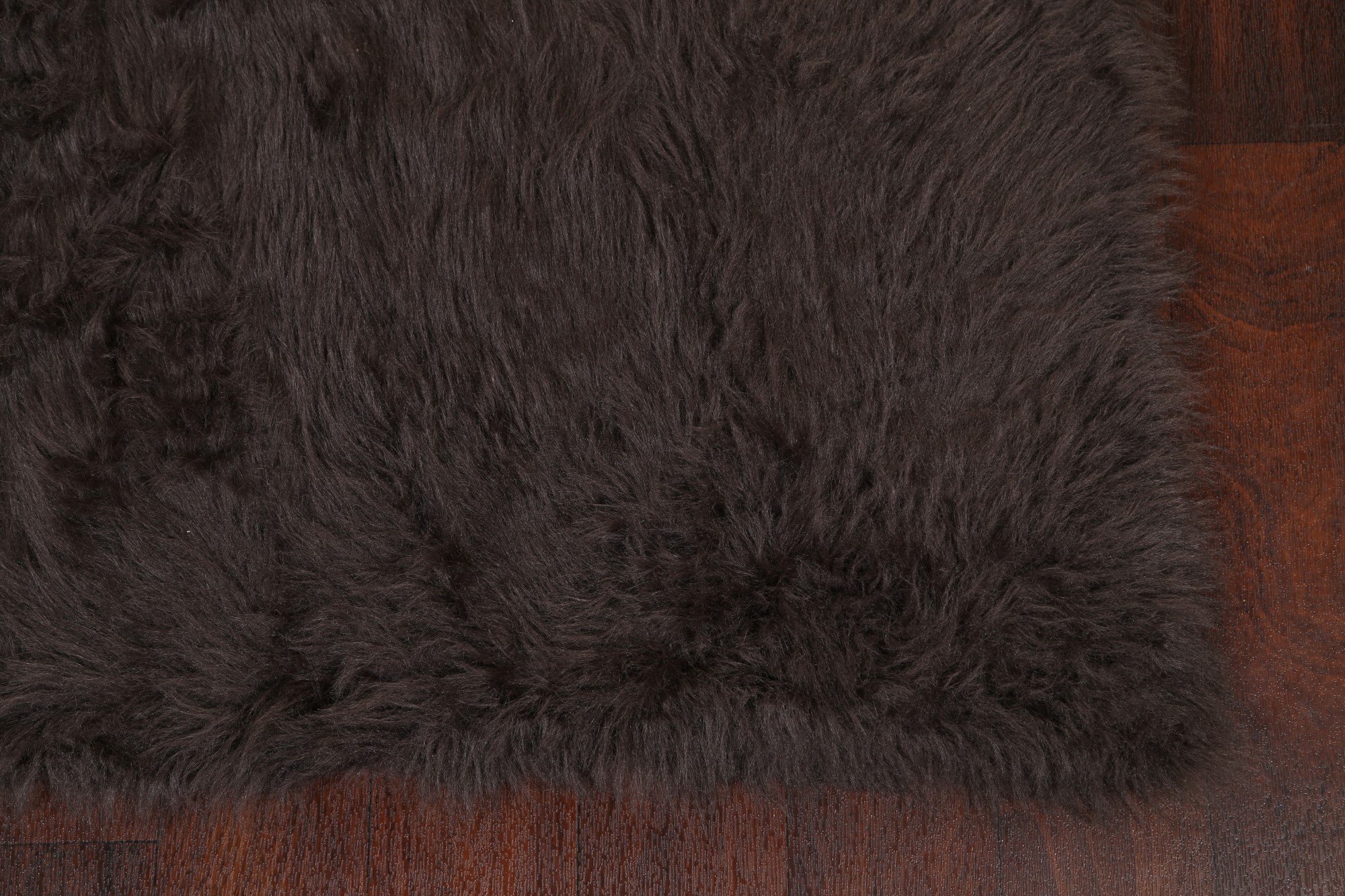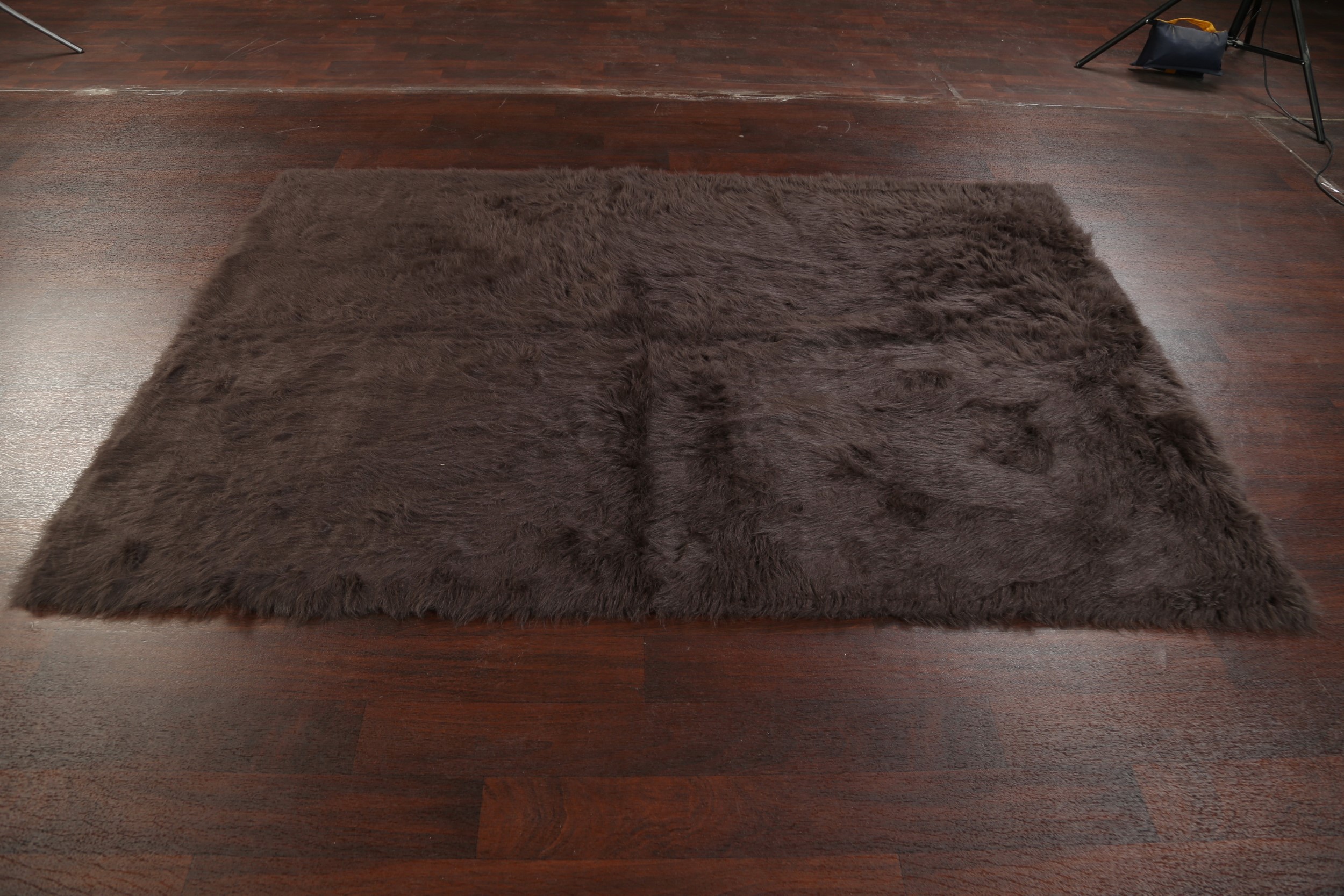 Contemporary Shaggy Oriental Area Rug 5x7 Dark Brown Hand-tufted Solid Carpet