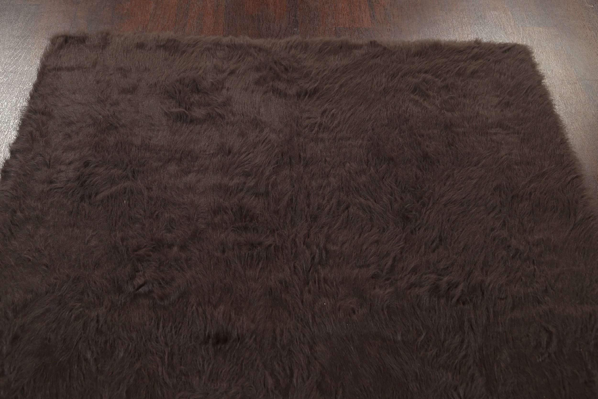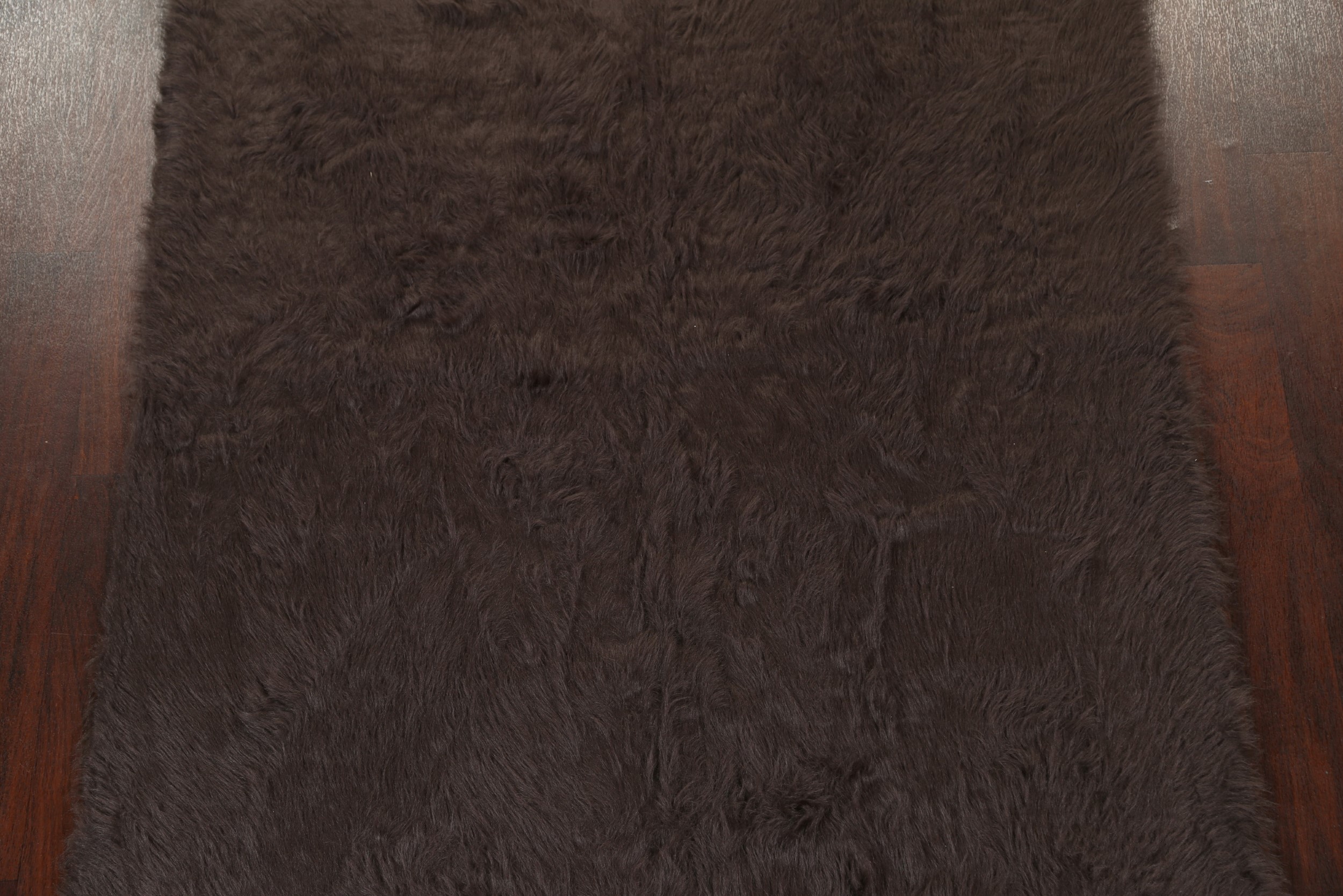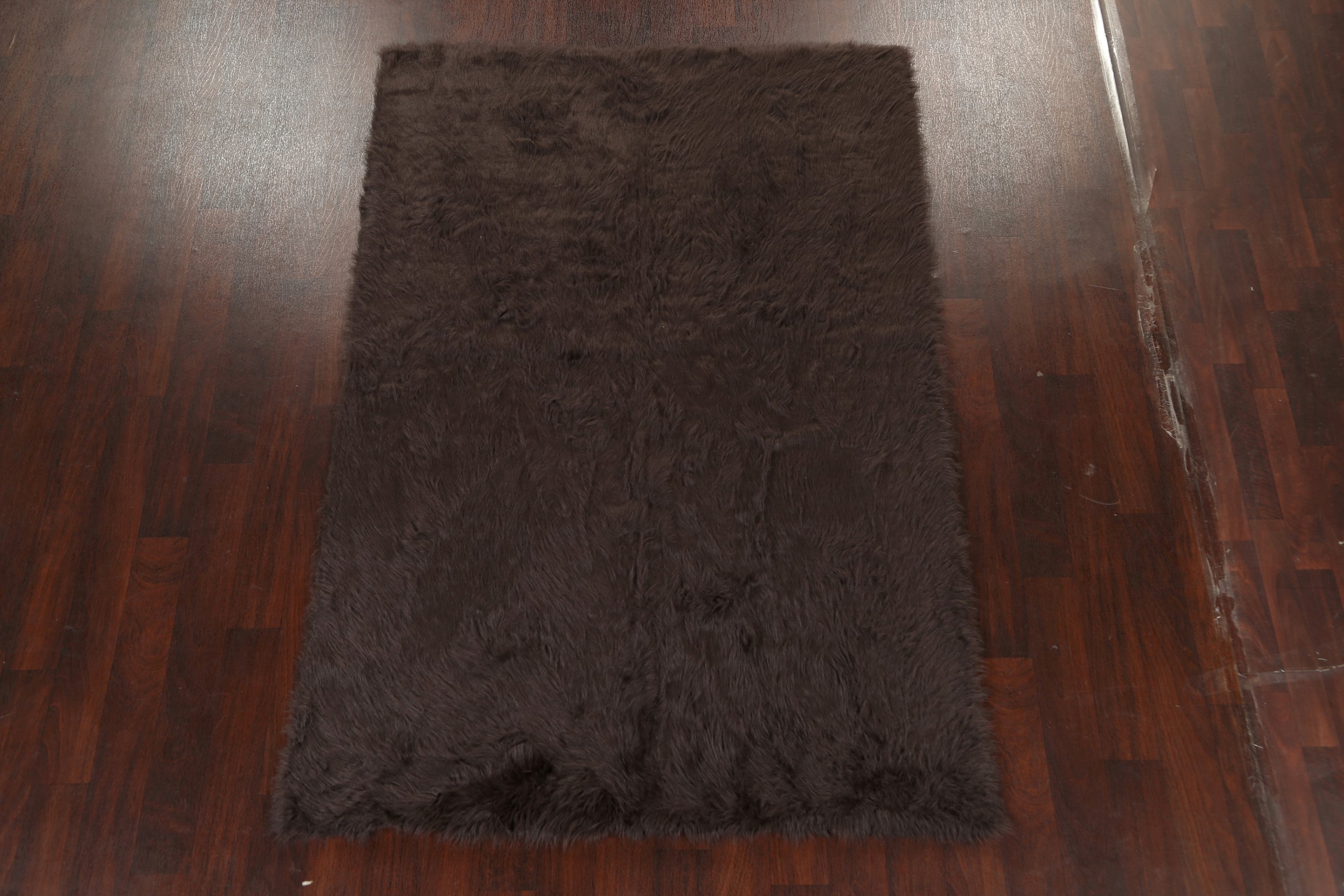 Contemporary Shaggy Oriental Area Rug 5x7 Dark Brown Hand-tufted Solid Carpet