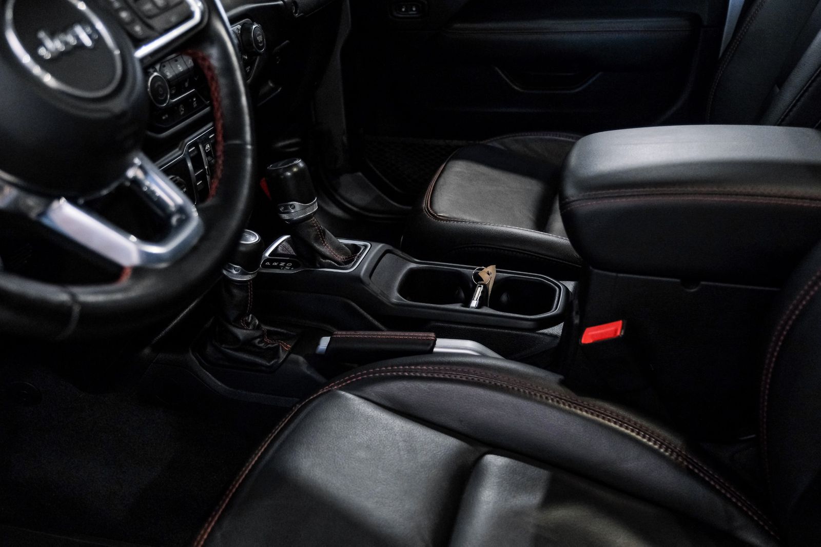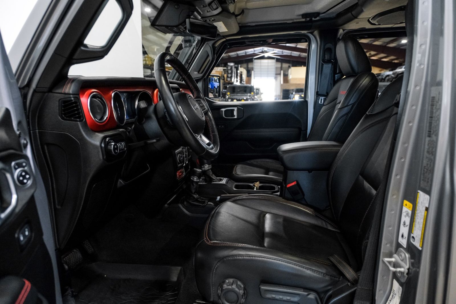Includes leather-trimmed bucket seats, premium full-length floor console with armrest, leather-wrapped shift knob and parking brake handle, premium door trim panels, and rear armrest with cupholders.