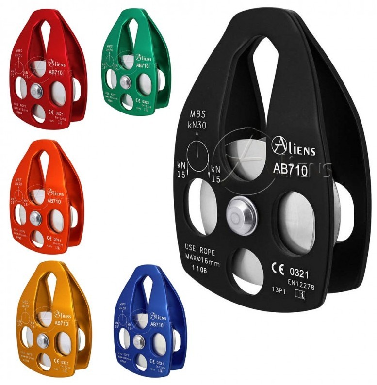 Jede der Umlenkrollen besitzt eine individuelle Nummerierung zur eindeutigen Identifizierung. Die Seitenteile der Standard Pulley von Aliens können gegenläufig verschoben werden, so kann die Rolle an jeder beliebigen Stelle des Seils aufgesetzt werden. Es gibt die Umlenkrollen in verschiedenen Farben, die Oberfläche der Gehäuseteile ist sogenannt "sandblastet" das macht sie angenehm im Handling. Die deutliche farbliche Kennzeichnung ermöglicht ein schnelles wiederfinden, besonders auf Waldboden und im Schnee. Die Standard Pulley von Aliens eignet sich für die Konstruktion von Flaschenzügen zum Lasten heben, Personen heben und Seilaufbauten unter Zug setzen.