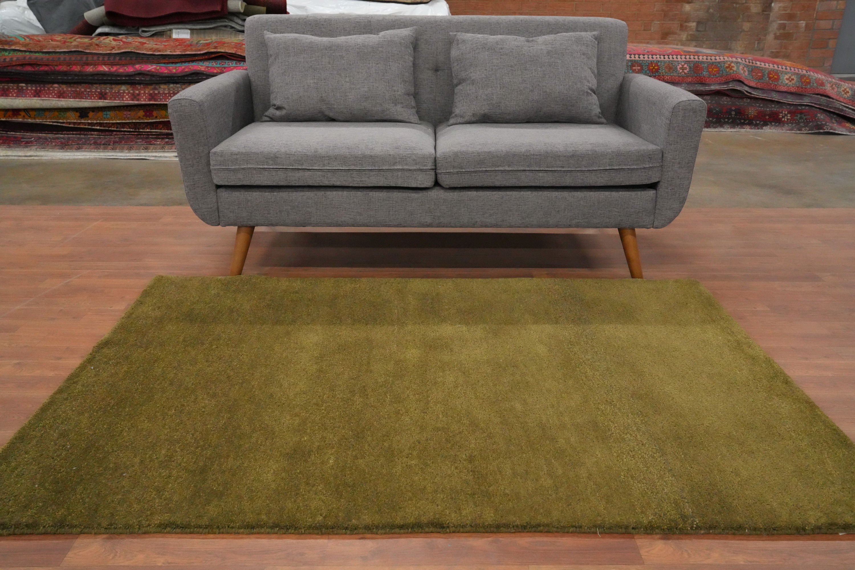 Olive Green Rug 4x6 Handmade Modern for Sophisticated Home Ambiance